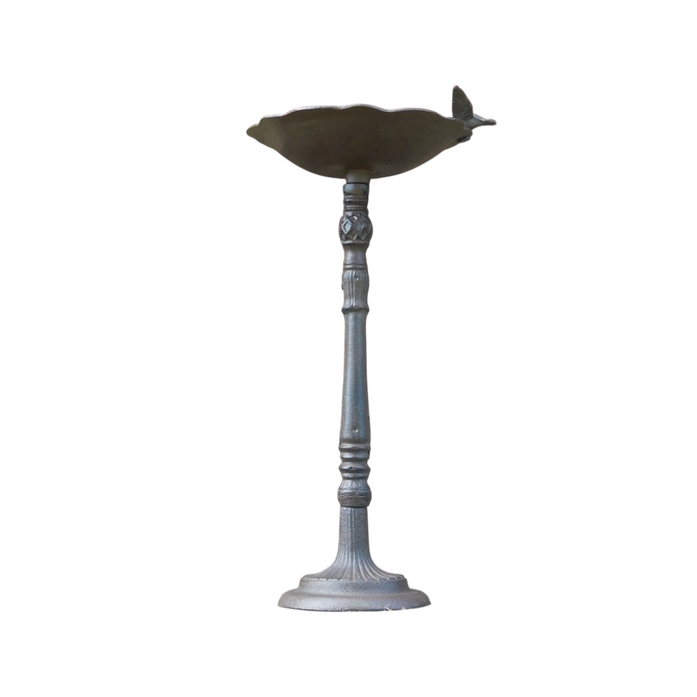 Bain d'oiseaux sur pied avec oiseau – 58,5 cm – fonte – marron
