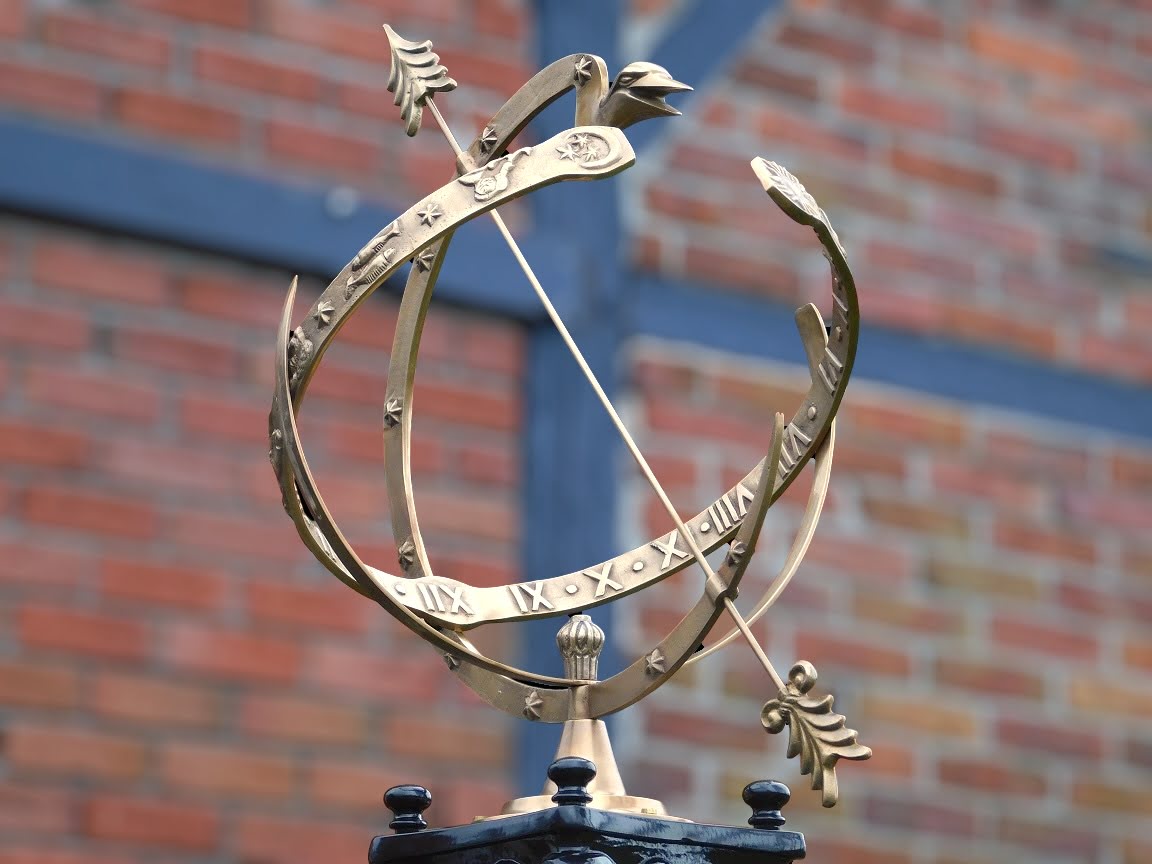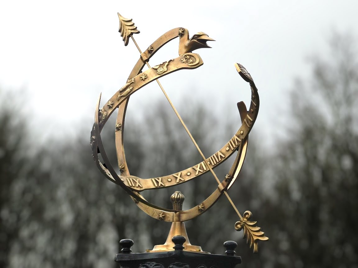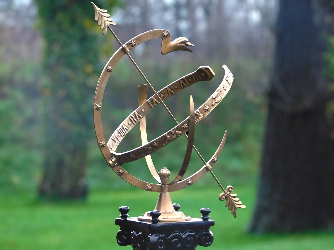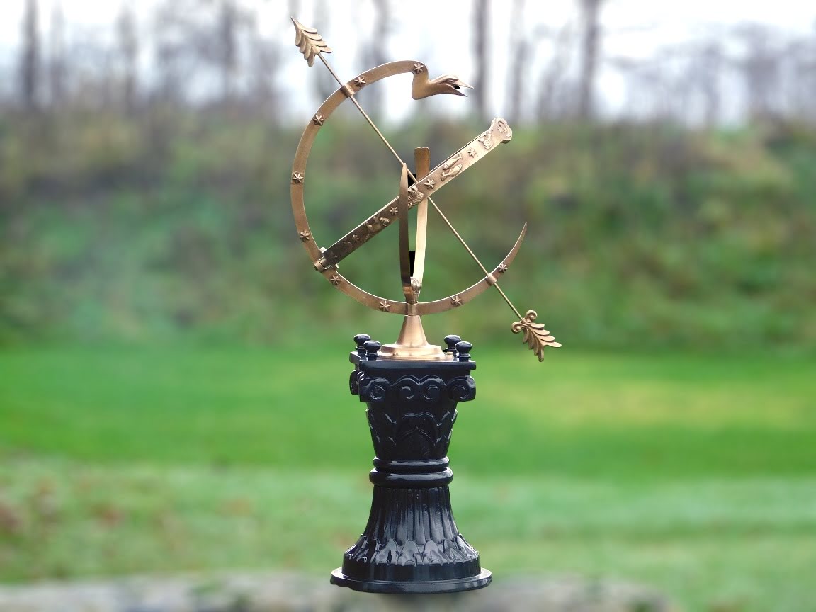 Cadran solaire en laiton sur socle en aluminium, hauteur 96,5 cm, décoration classique pour le jardin.