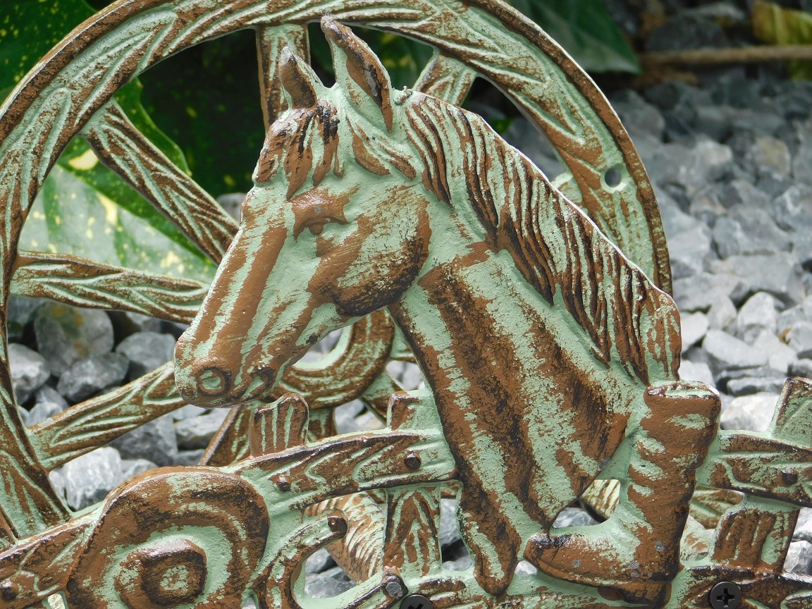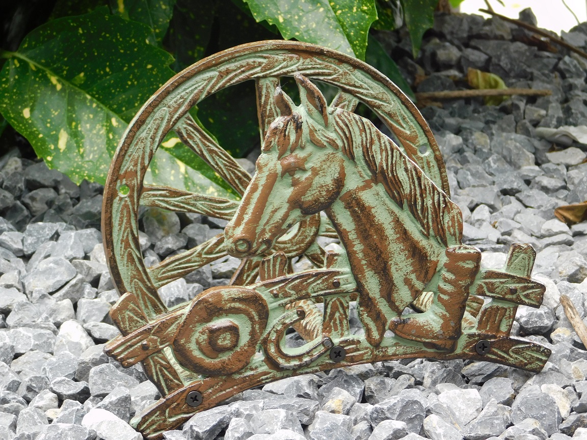 Idéal pour tous les amoureux des chevaux !Ce support pour tuyau d'arrosage est la décoration de jardin idéale sur le mur d'un centre équestre !