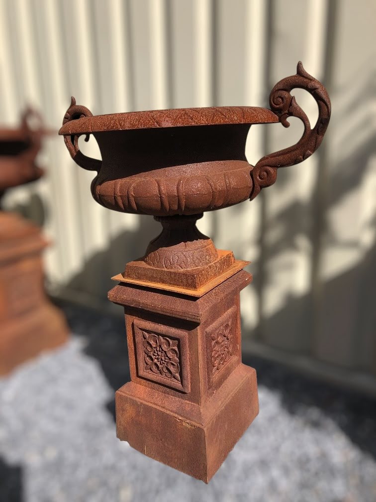 Contenu : 1 vase en fonte sur socle.