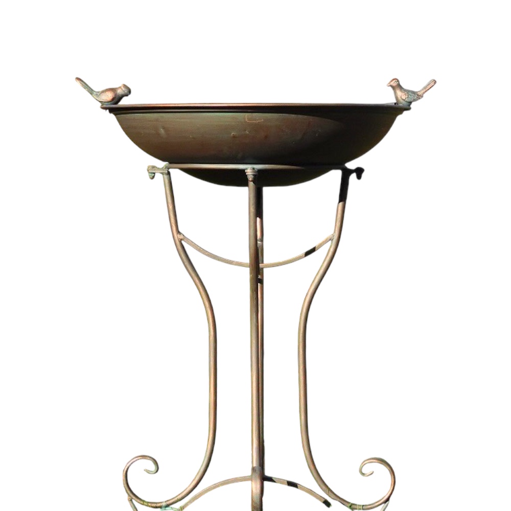 Élégant bain d'oiseaux sur pied – 78 cm, fer, patine bronze.