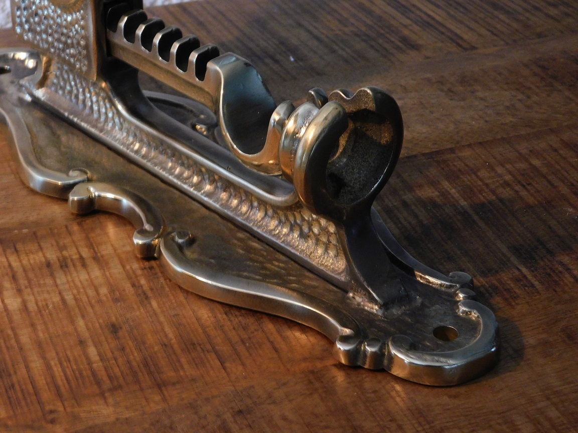 Grâce à sa construction en laiton massif et à son élégante patine, ce tire-bouchon allie robustesse et caractère. Son levier généreux permet d'extraire sans effort même les bouchons les plus récalcitrants, tandis que sa fixation murale assure praticité et stabilité.