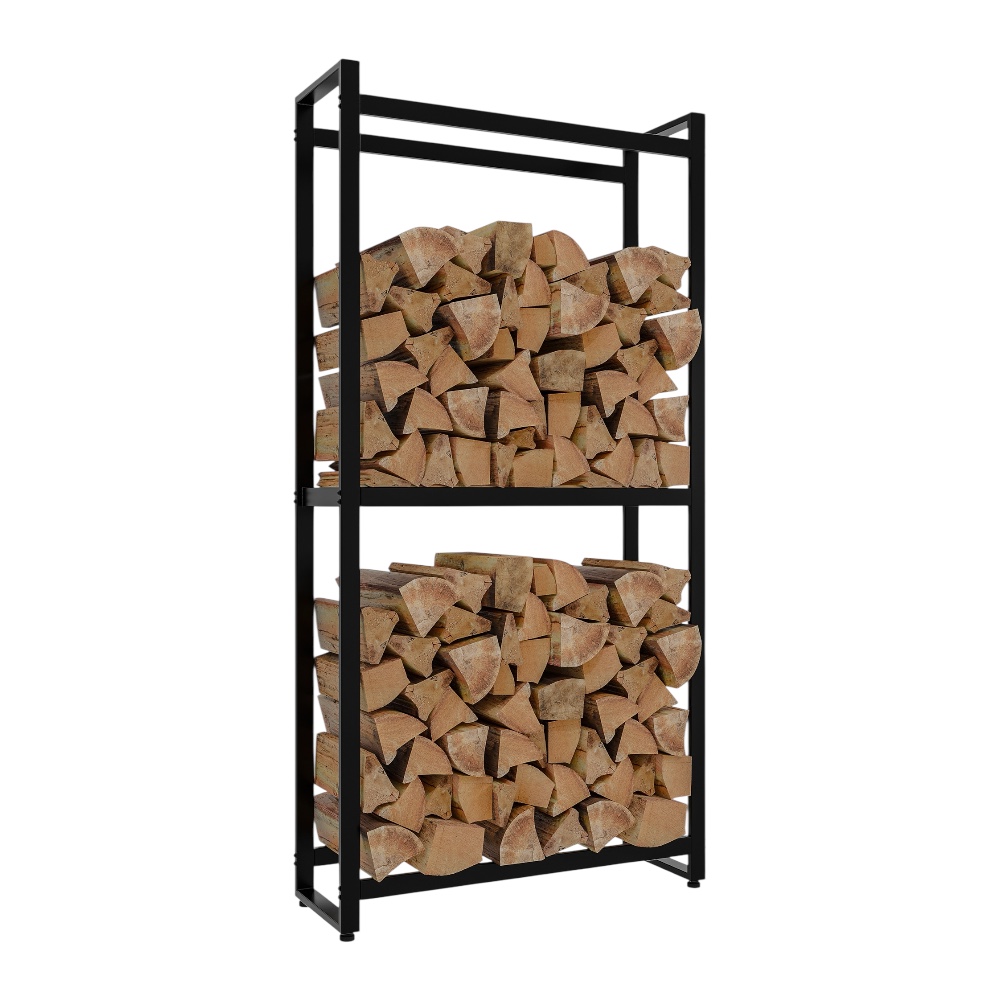Étagère à bûches en acier noir – 150 cm – Élégante et robuste.