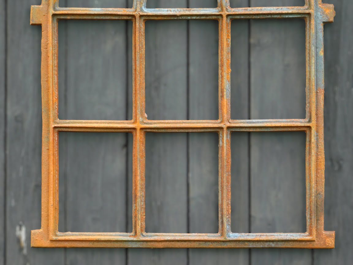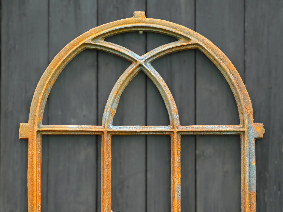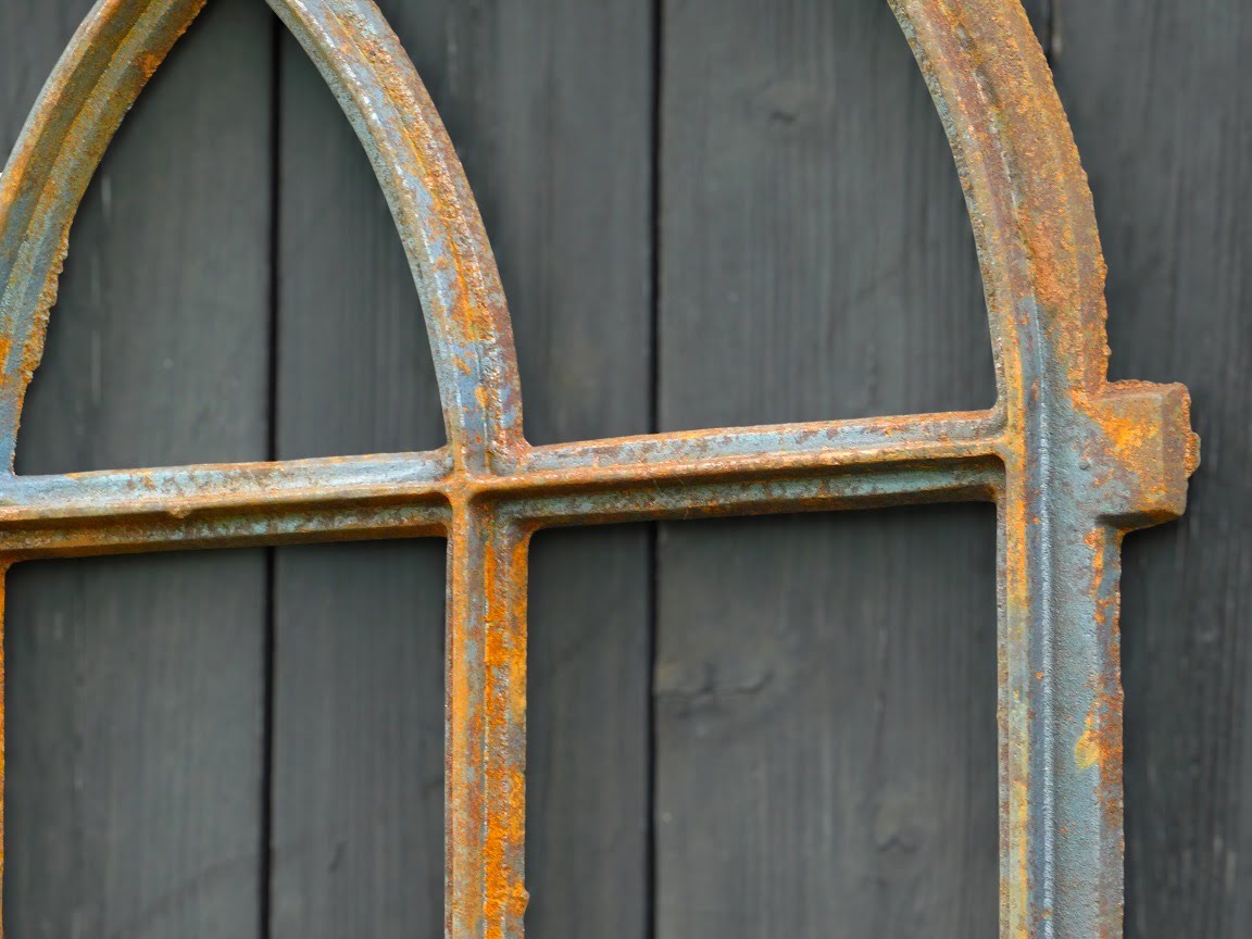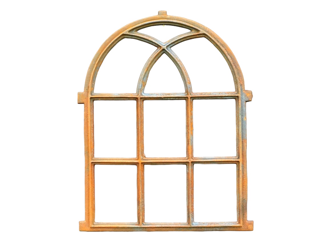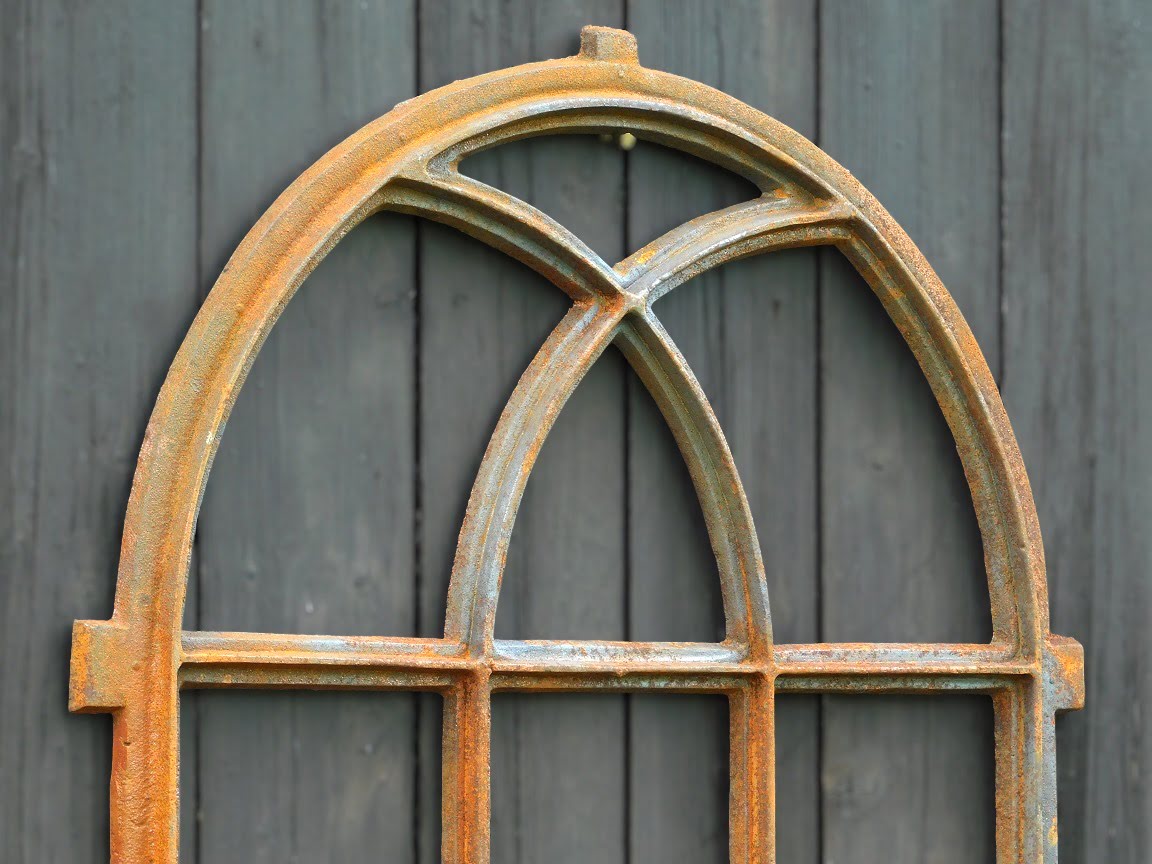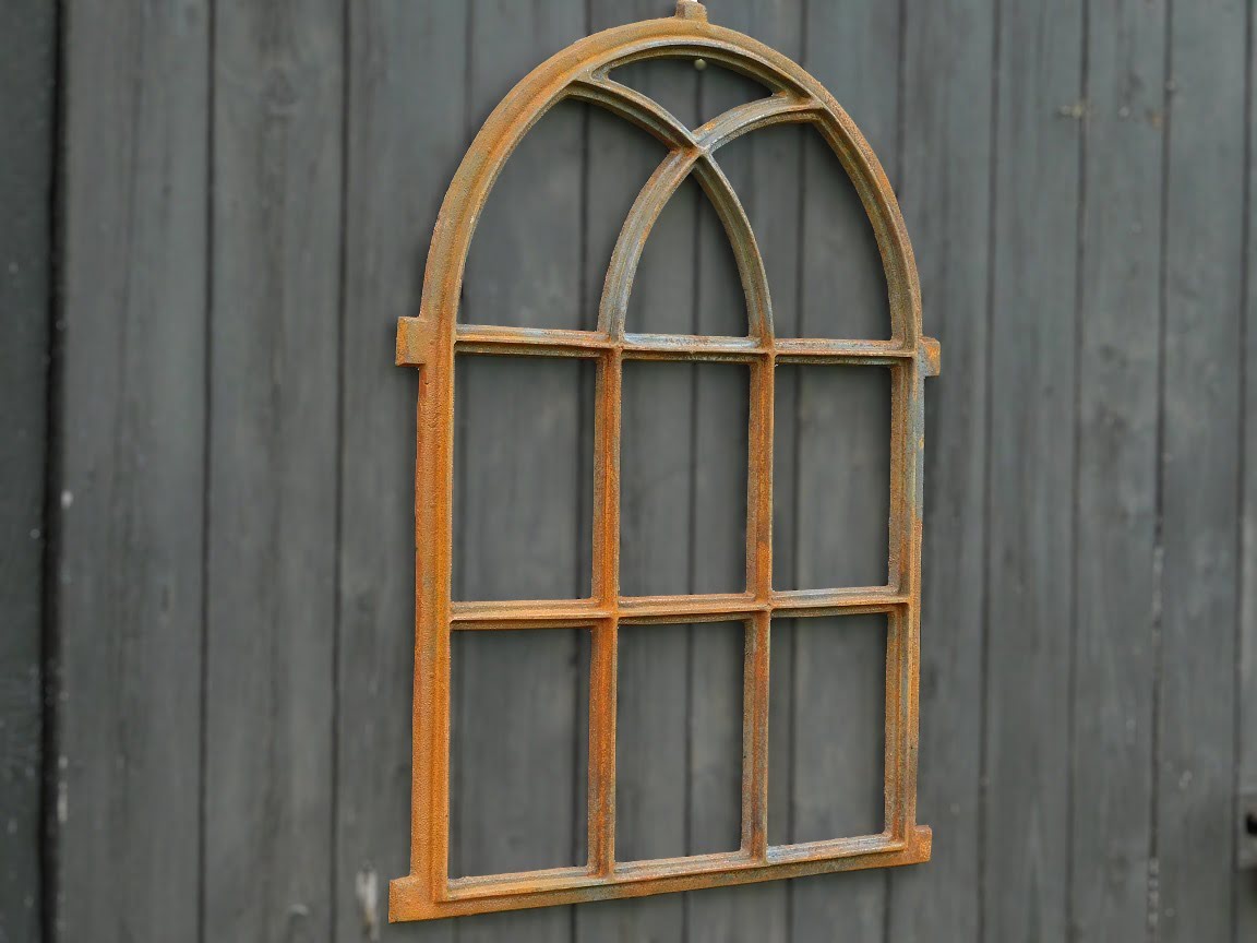 La fenêtre est fabriquée en fonte massive avec une surface rouillée naturelle qui lui confère une apparence de caractère. Si vous le souhaitez, vous pouvez facilement le nettoyer à la brosse, après quoi la fenêtre peut être peinte dans la couleur souhaitée.