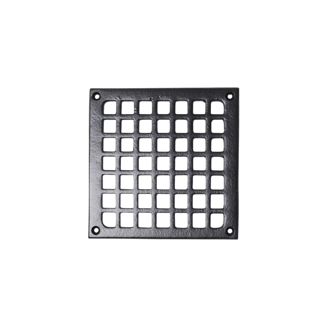 Une grille d'aération carrée au design élégant, fabriquée en fer de haute qualité et finie en noir mat élégant. Cette grille combine une fonction de ventilation pratique avec un look industriel intemporel, ce qui la rend adaptée à diverses applications dans les intérieurs modernes et classiques.