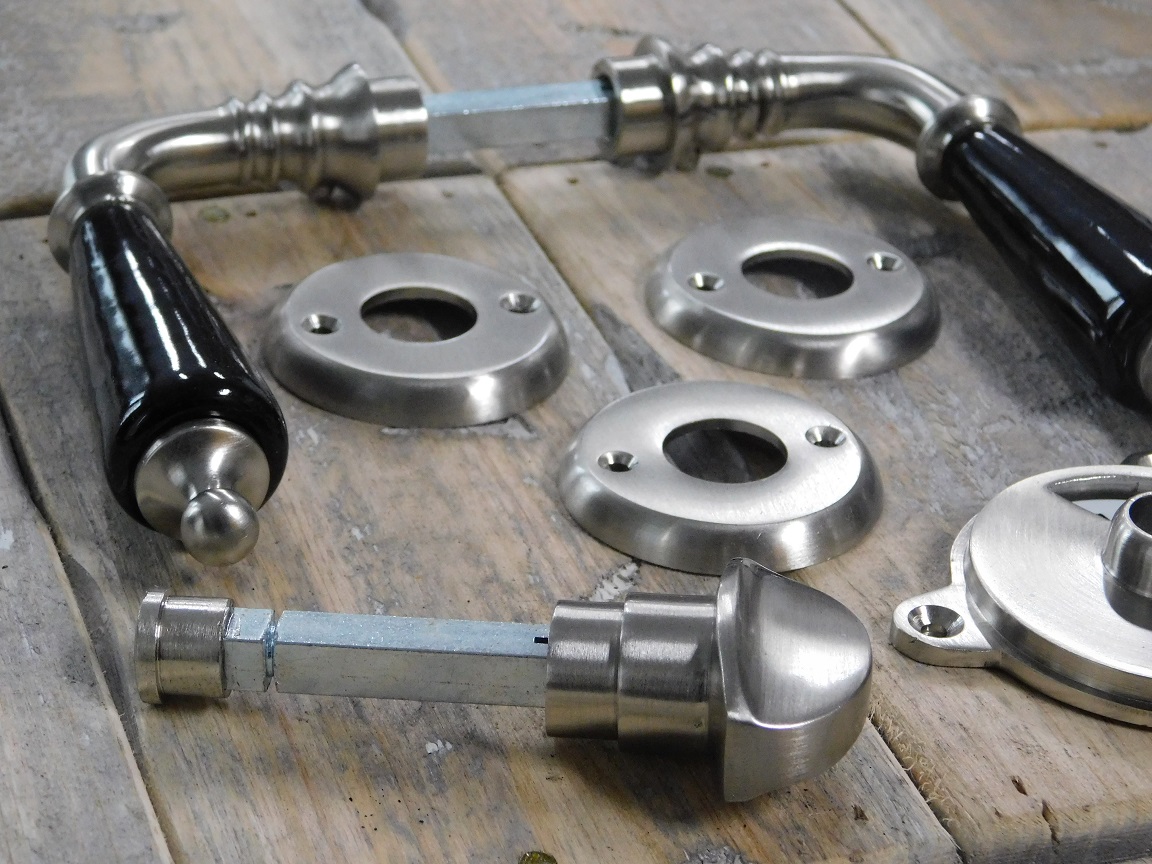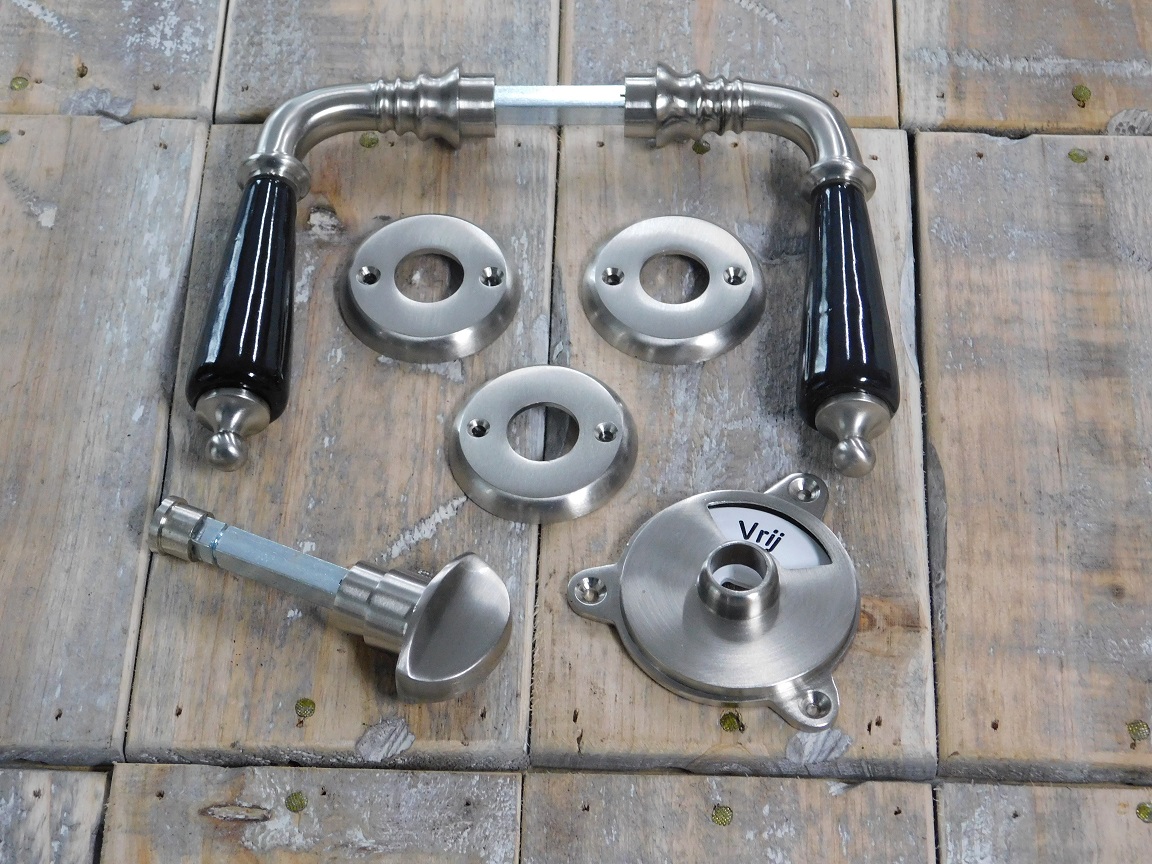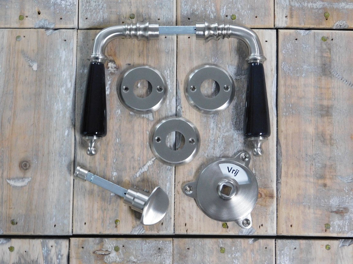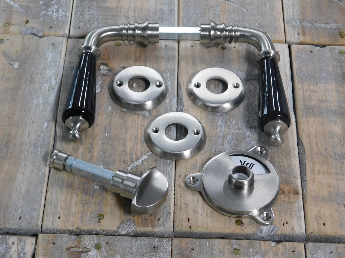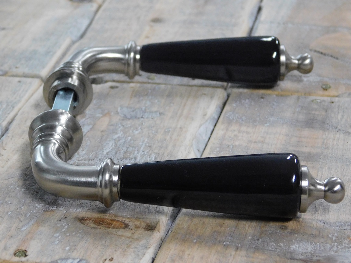 Contenu de la livraison : 1 serrure rotative avec 2 poignées de porte avec poignées en porcelaine en Deep Black, nickel brossé