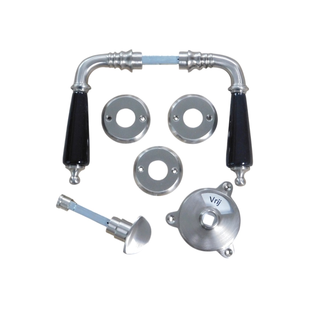 Ensemble de quincaillerie pour porte de toilettes - poignées de porte + serrure rotative, nickel mat