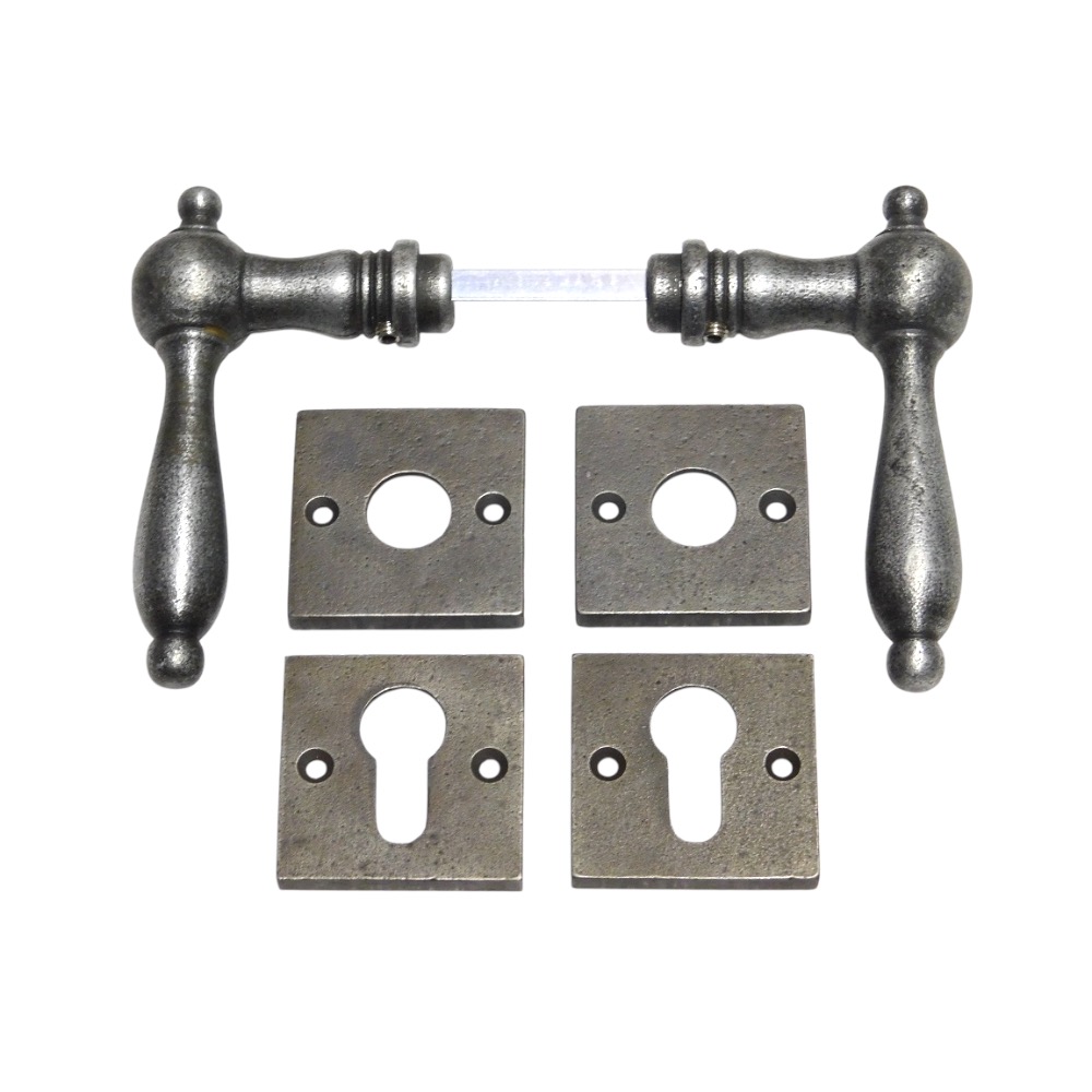 Ensemble de poignées de porte Cambridge avec rosaces carrées en fonte galvanisée.