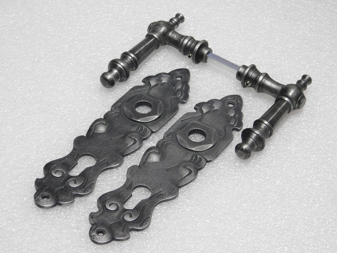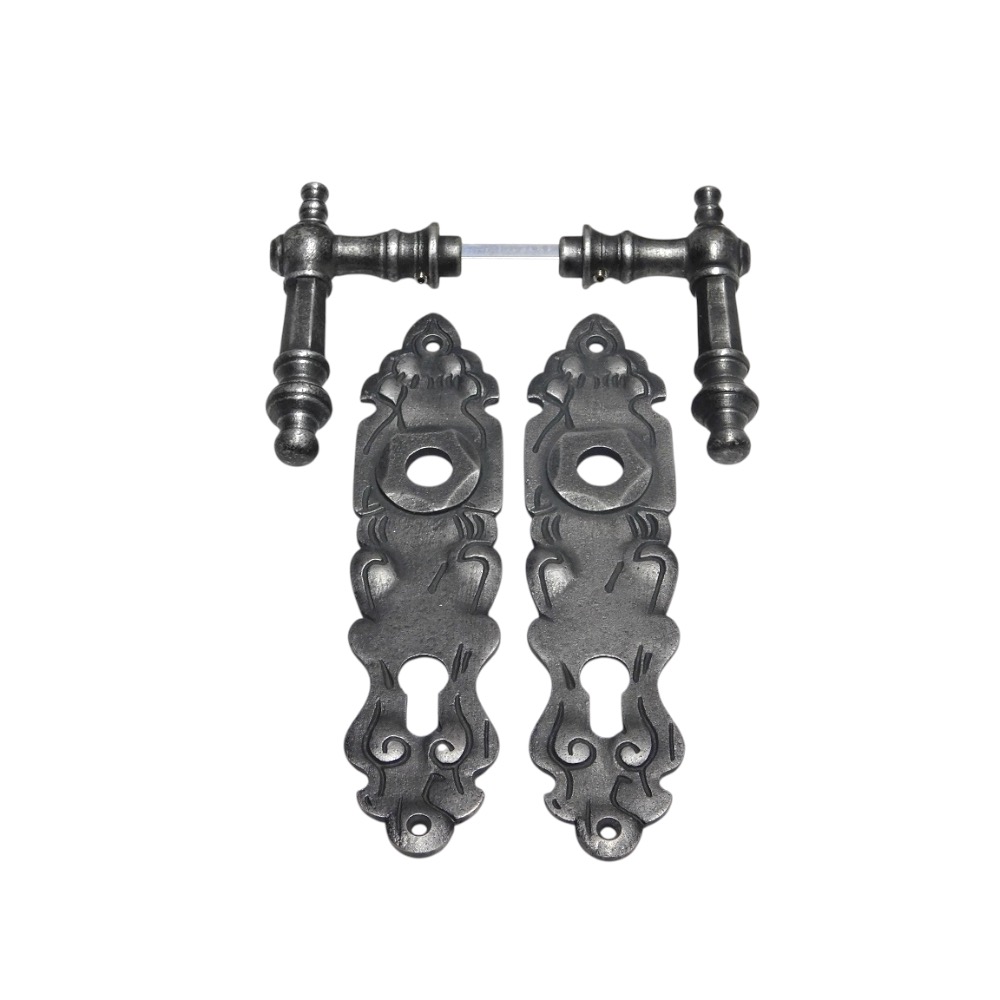 Ensemble de quincaillerie de porte – Poignées Victoria avec rosaces Royale – Fonte galvanisée – PC 92.