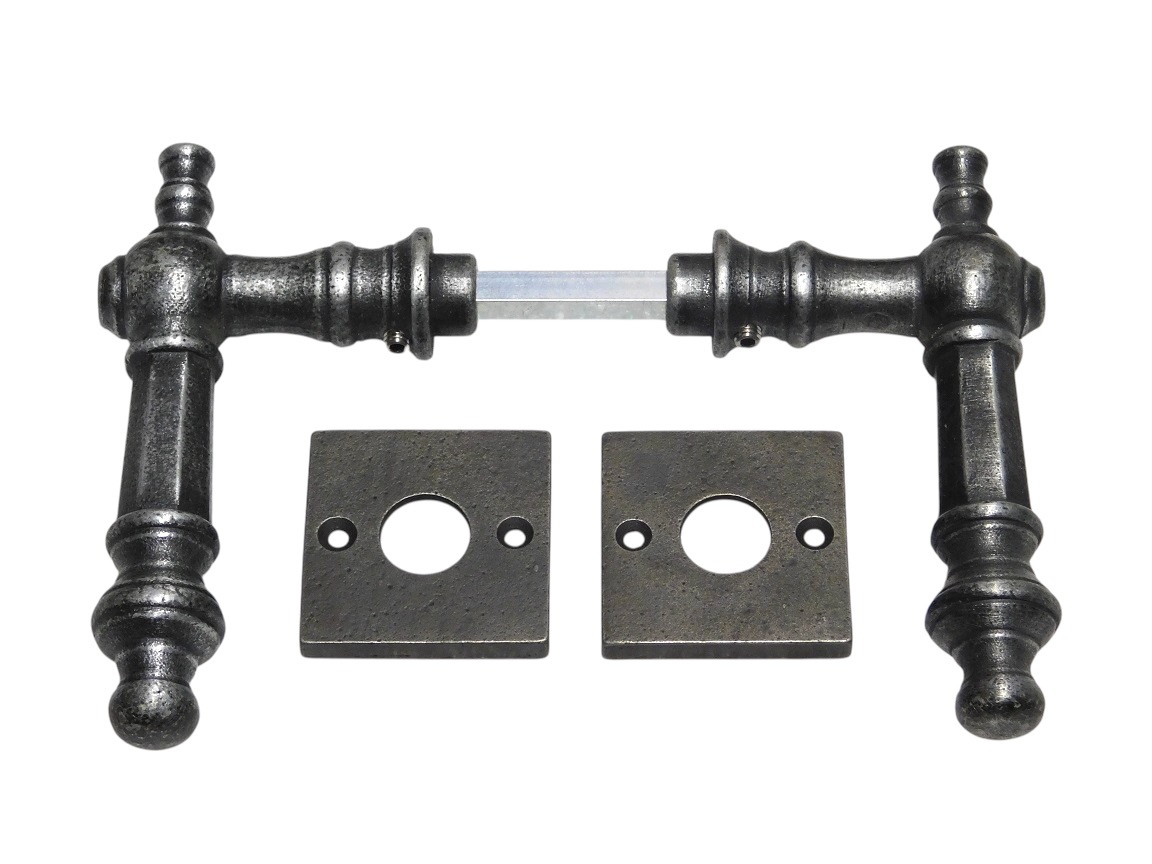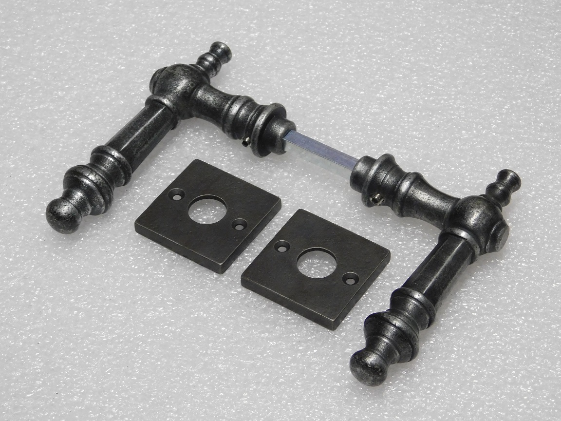 Ensemble de poignées Victoria + rosaces carrées - Fonte galvanisée.