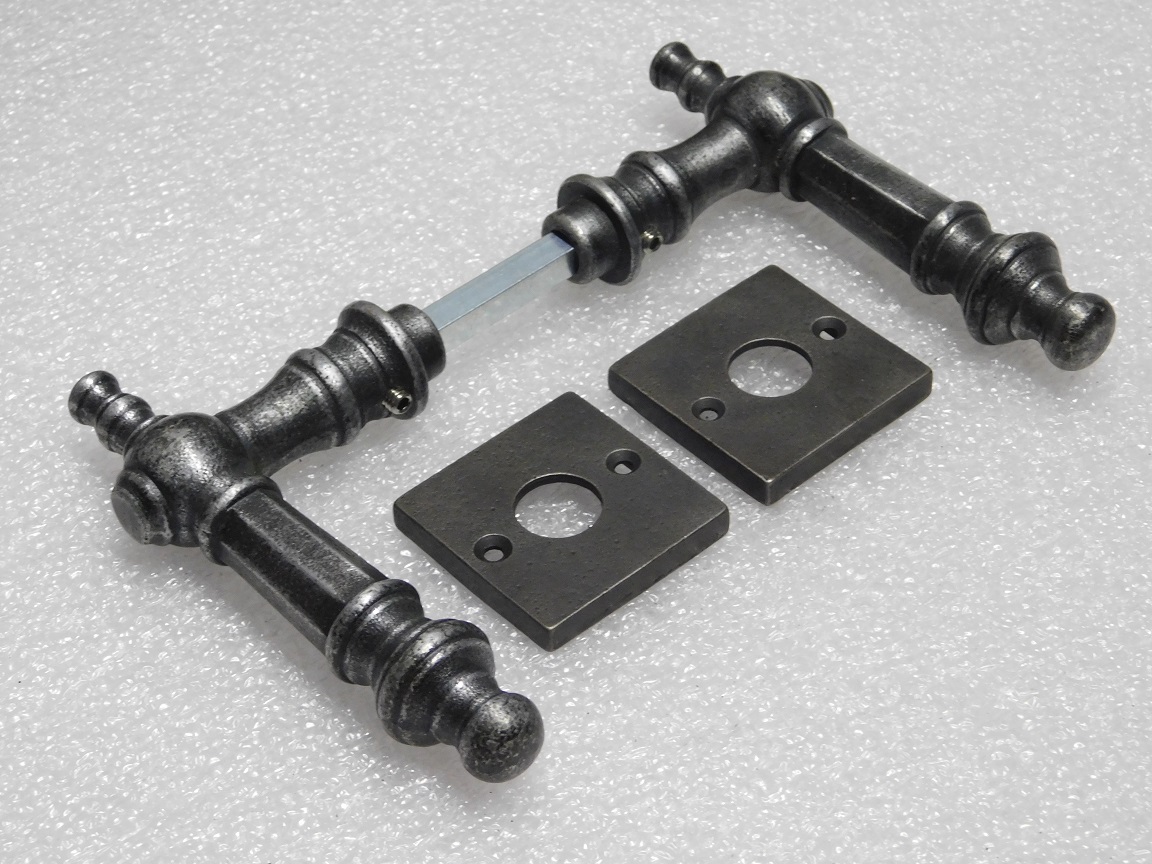 Lot de poignées 'Victoria' et de rosaces carrées - fonte zinguée