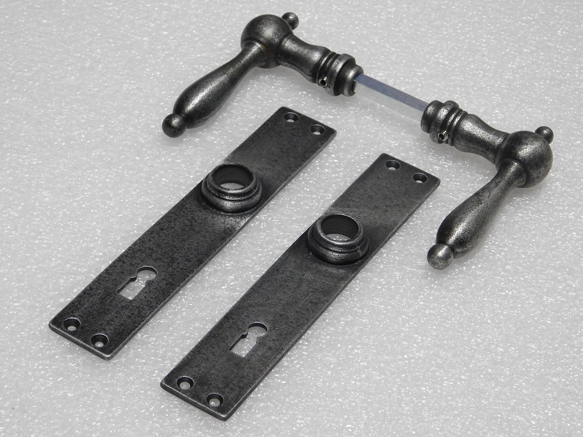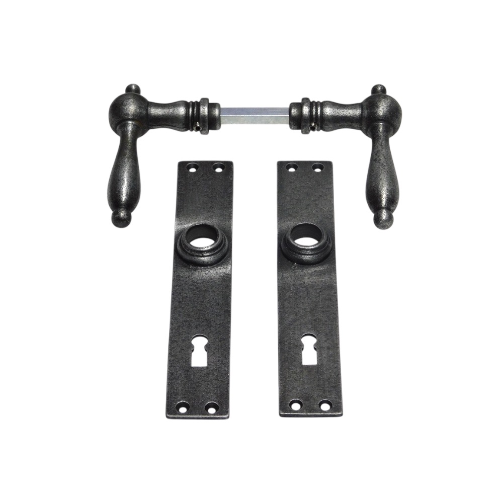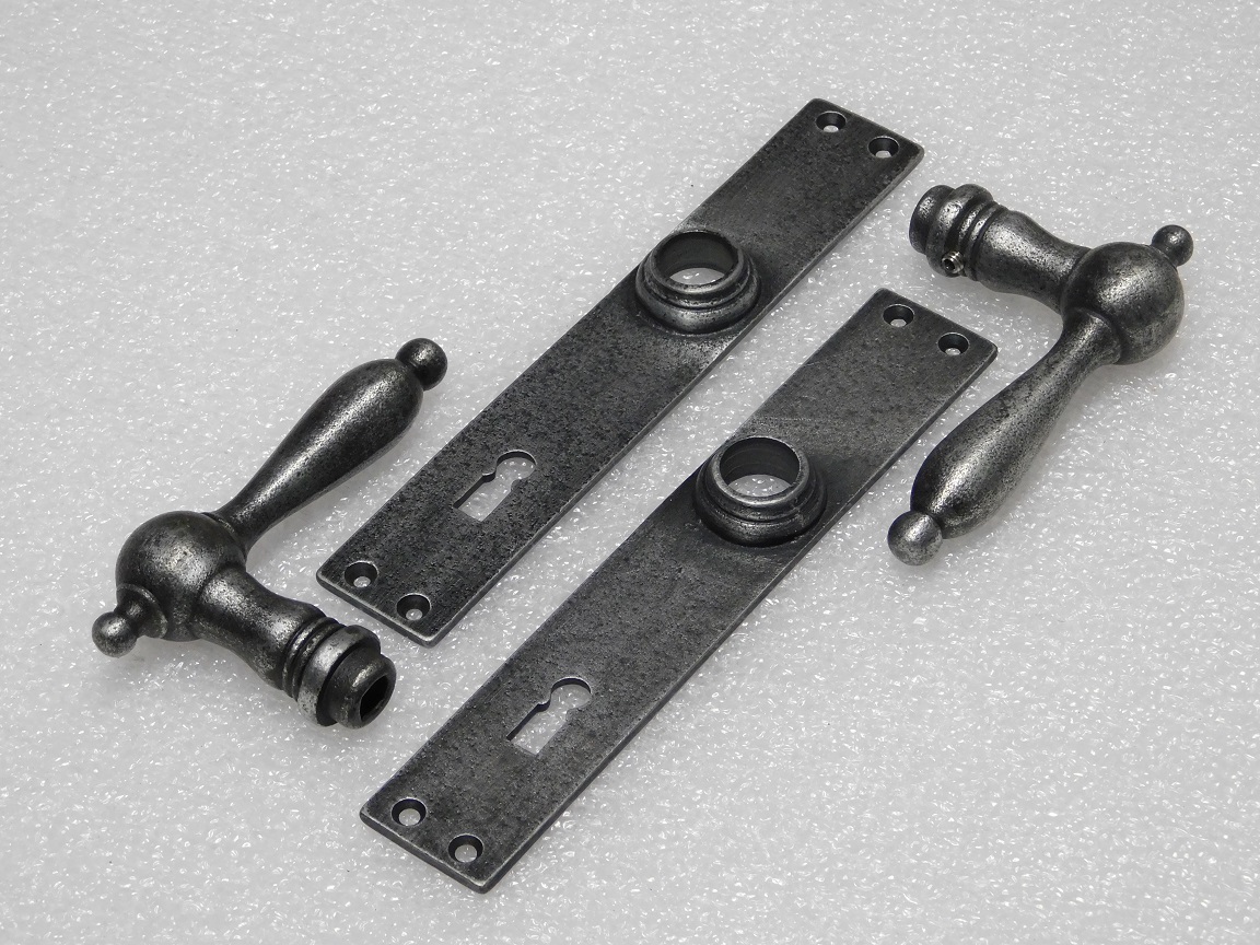 Ensemble de quincaillerie de porte - Poignées Cambridge + Plaques de porte Blanco BB 72 - Fonte galvanisée