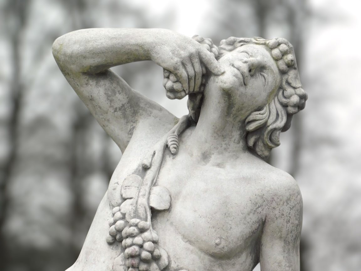 Grande statue de Bacchus pour le jardin : une figure mythologique en pierre, ornement exclusif pour l'extérieur.