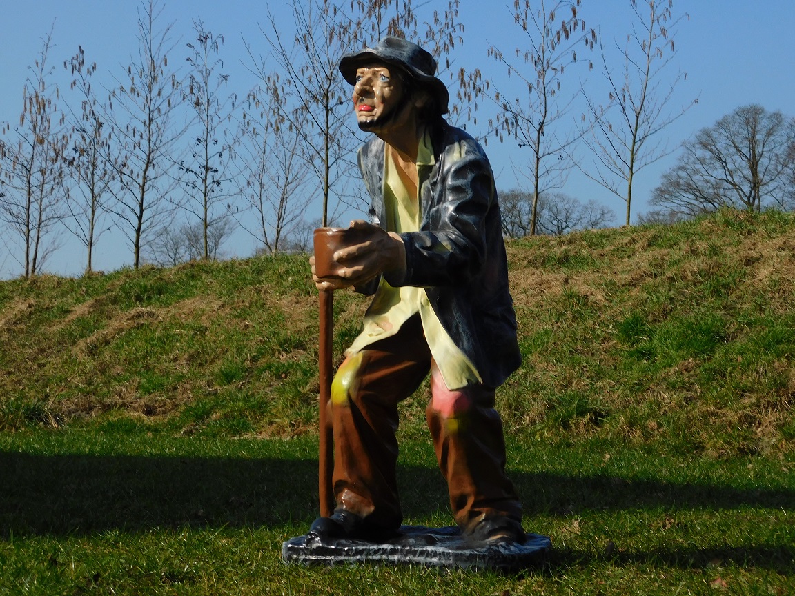 Cette remarquable statue décorative représente un homme avec une canne et un bol à la main. Son aspect humoristique et ludique en fait une pièce maîtresse unique pour votre maison ou votre jardin. La pose expressive et la finition soignée lui confèrent un aspect vibrant et expressif.
