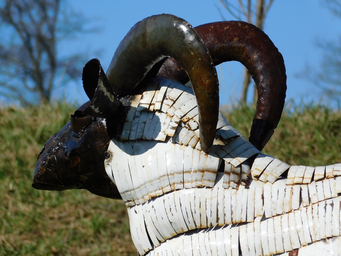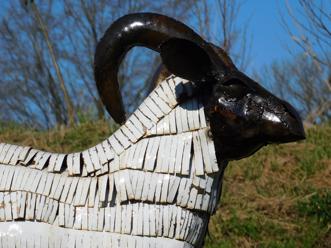 Statue unique représentant un mouton, œuvre d'art fabriquée à la main en Afrique à partir de matériaux automobiles recyclés, statue de jardin exclusive !