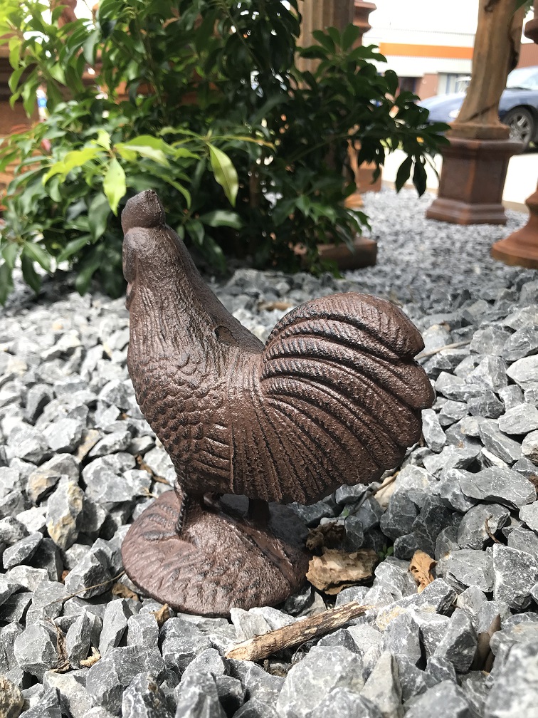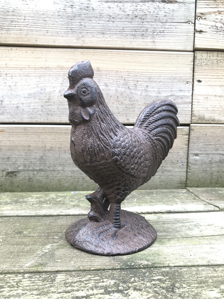 Coq - statue en fonte - 17 cm - marron/noir - en détail