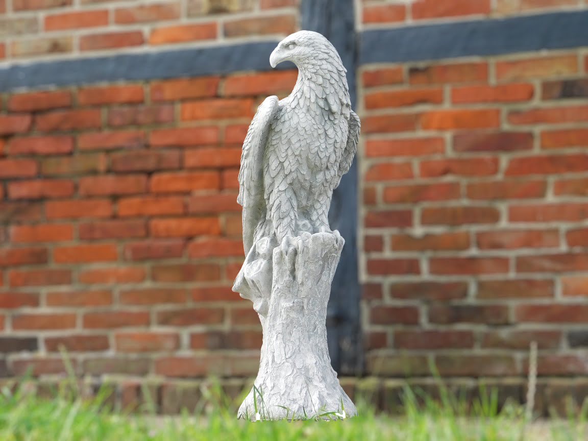 Aigle sur souche d'arbre, statue de jardin en pierre : ornement de jardin exclusif de 105 cm de haut.