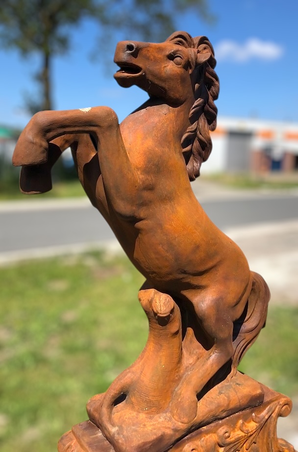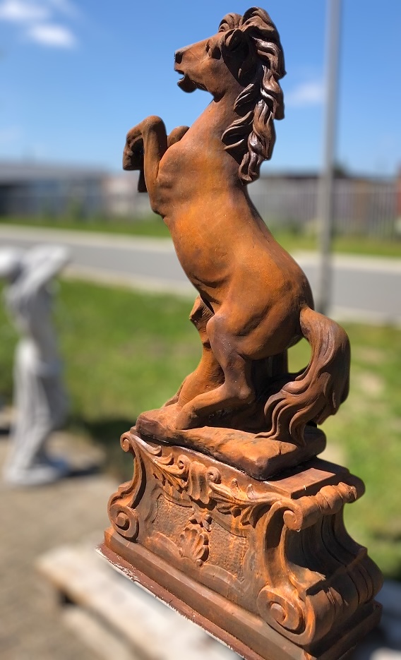 Contenu de la livraison : 1x cheval cabré sur socle, pierre solide, oxyde.