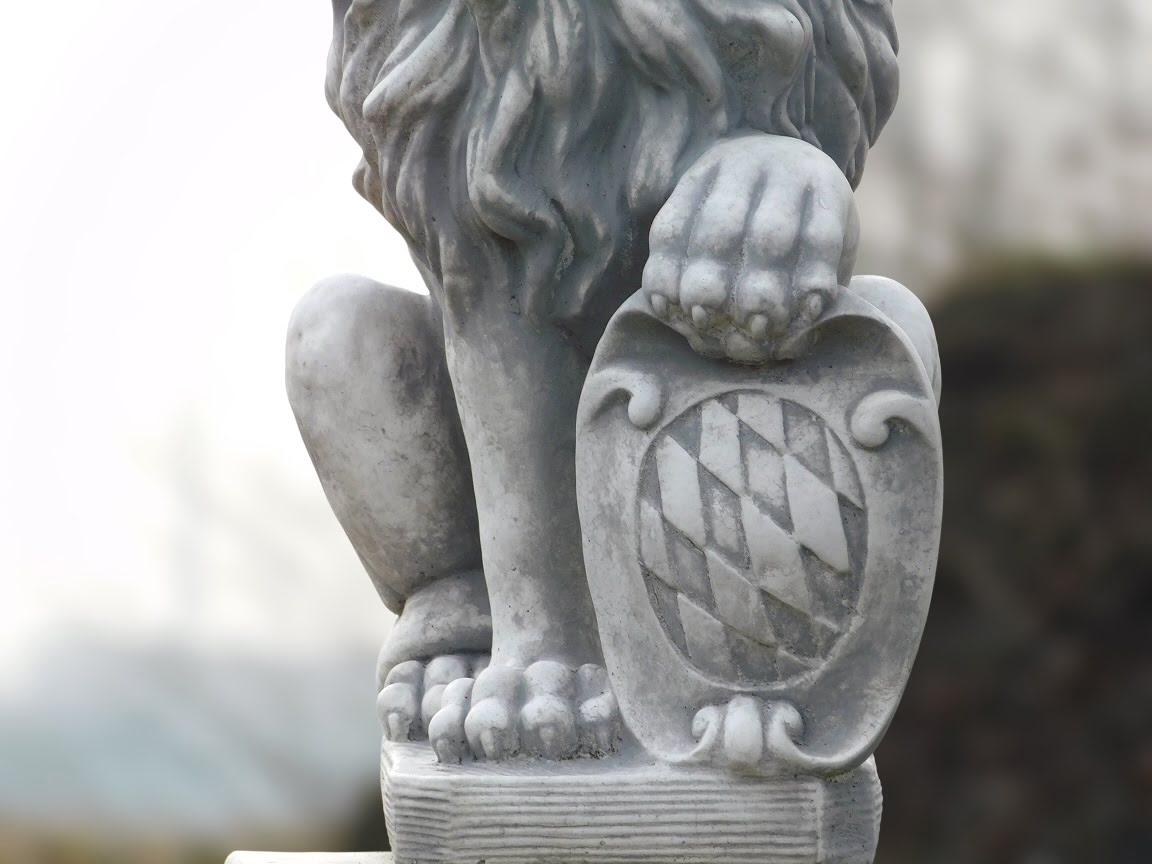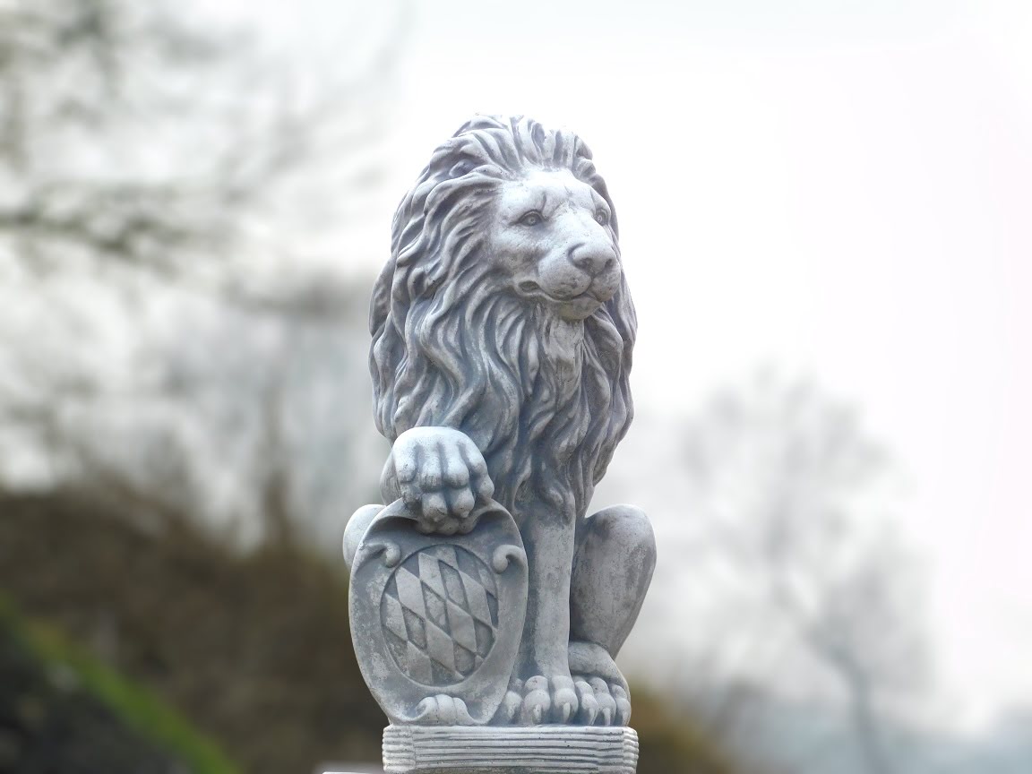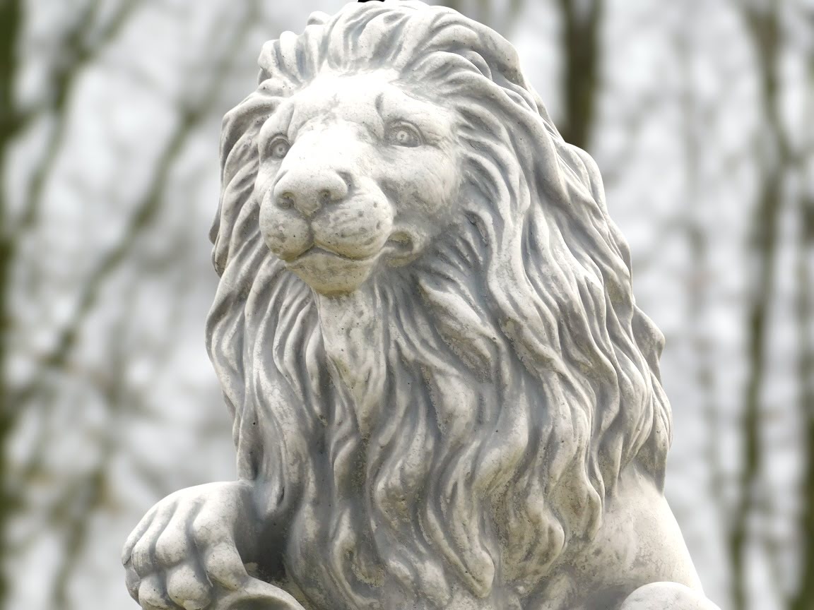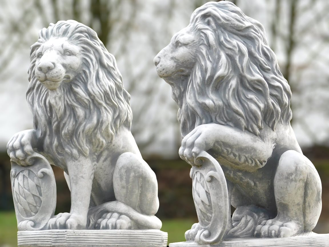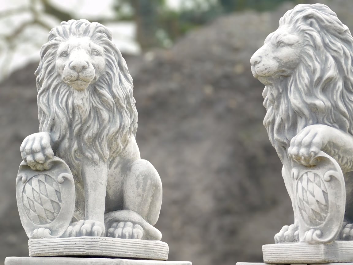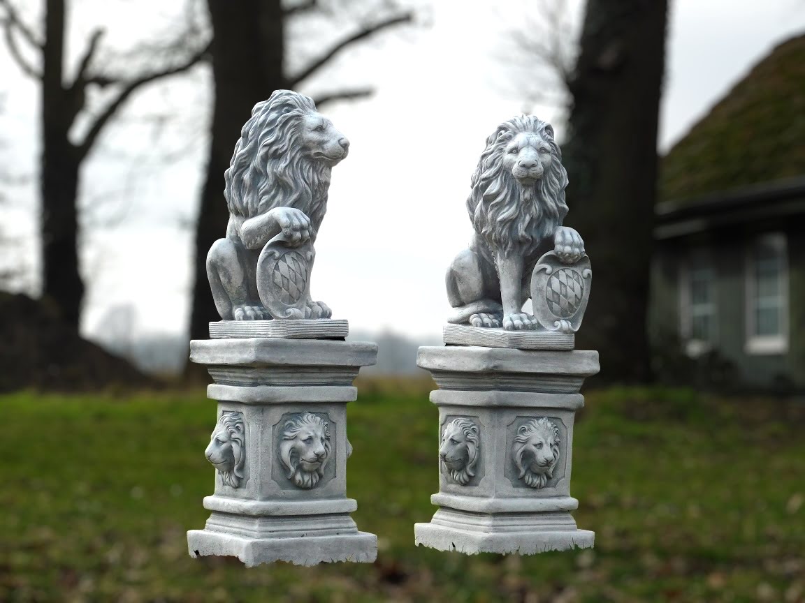 Décoration classique pour jardin : ensemble de statues représentant des lions majestueux sur socle