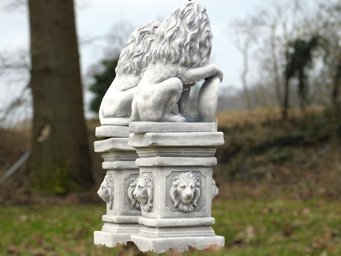 Contenu de la livraison : 1x ensemble de 2 lions sur socle, pierre.
