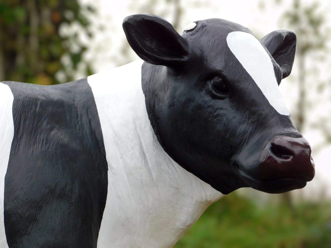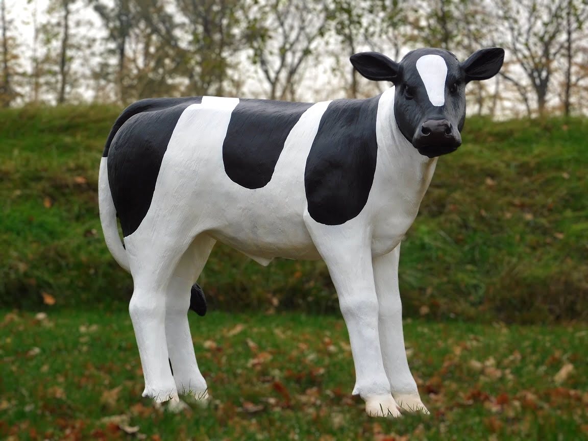 Statue de jardin taureau grand format (120 cm) en noir et blanc, sculpture pour l'intérieur et l'extérieur, fabriqué en polystone (plastique de haute qualité).