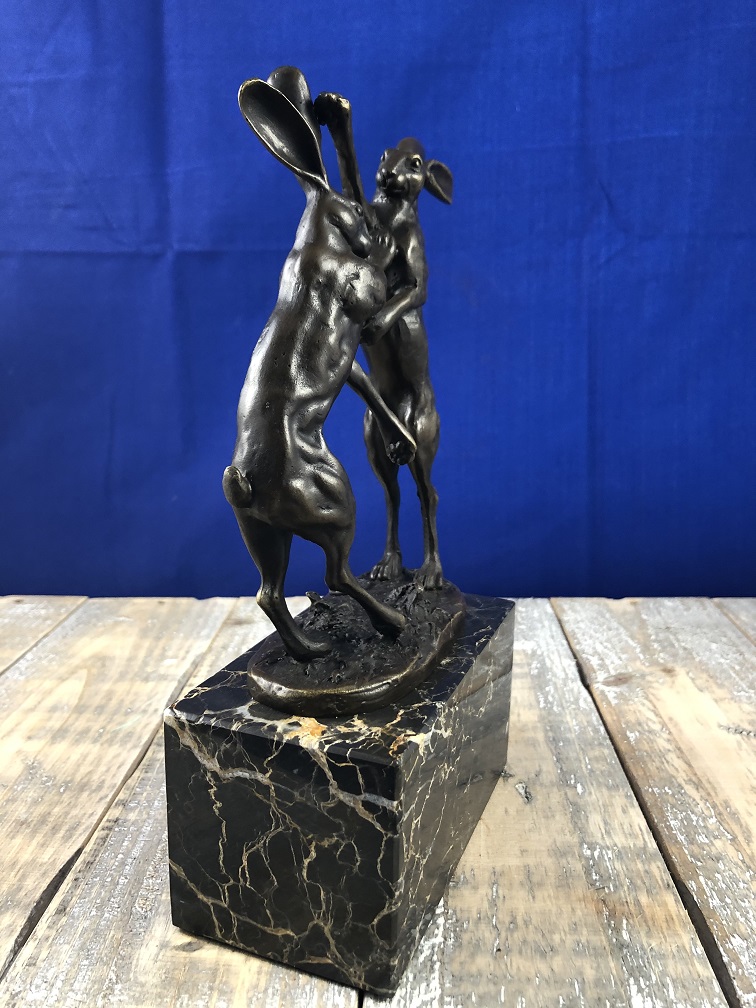 Alternatieve artikelen voor Bronzen beeld van 2 speelse hazen op marmer base.