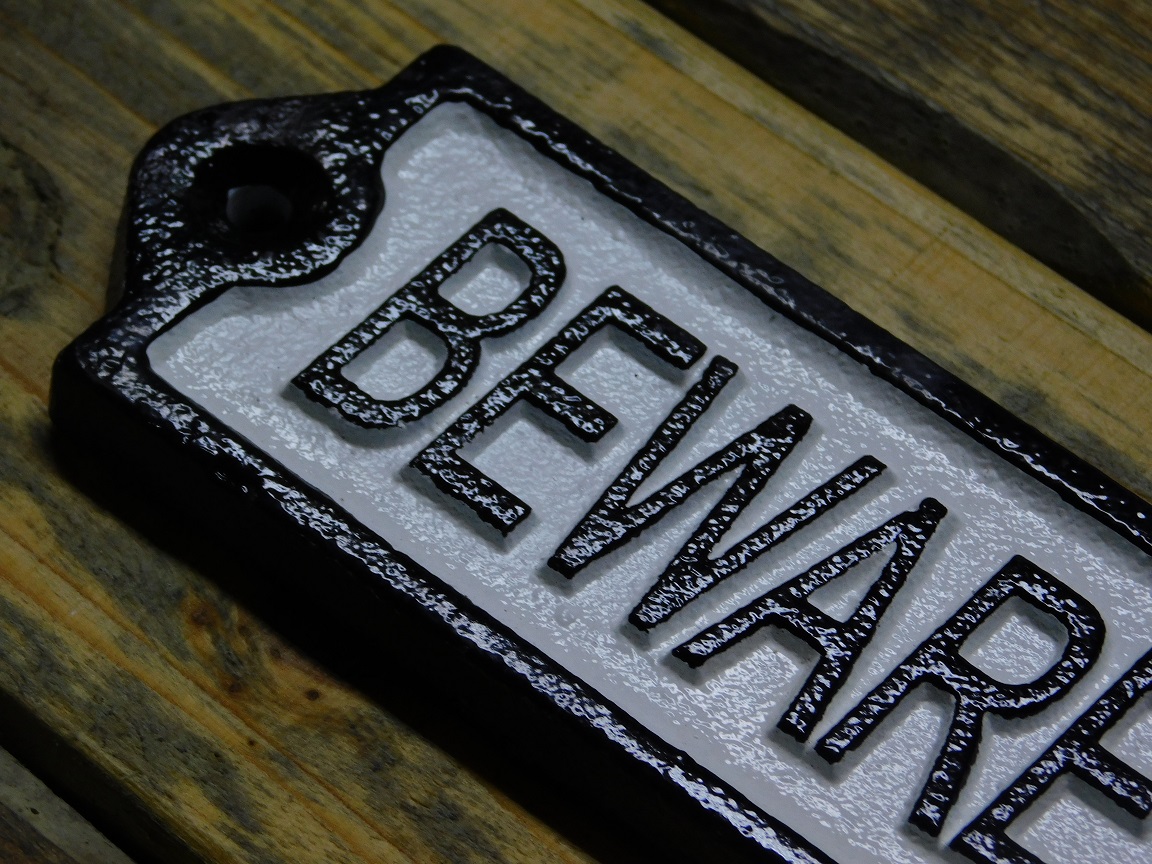 • Duidelijke Waarschuwing: De tekst "Beware of the Dog" is duidelijk zichtbaar in contrasterend wit op zwart, waardoor bezoekers direct gewaarschuwd worden.