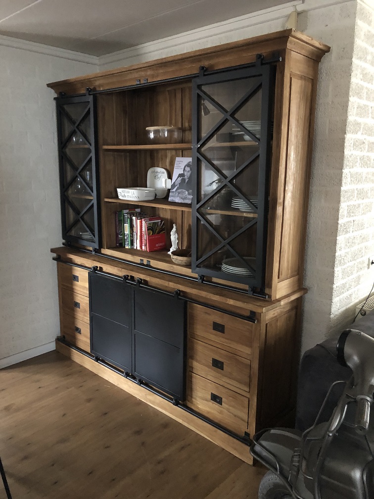 kast een echt industriële look. Prachtige zware uitgevoerde sierlijke stoere kast, mooi meubel. Kijk naar de foto's die spreken voor zich.