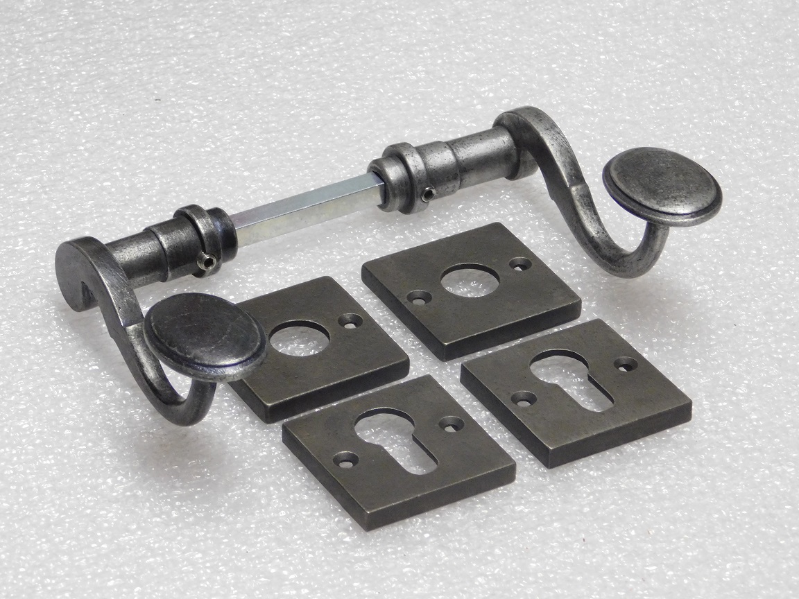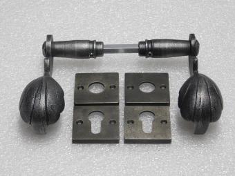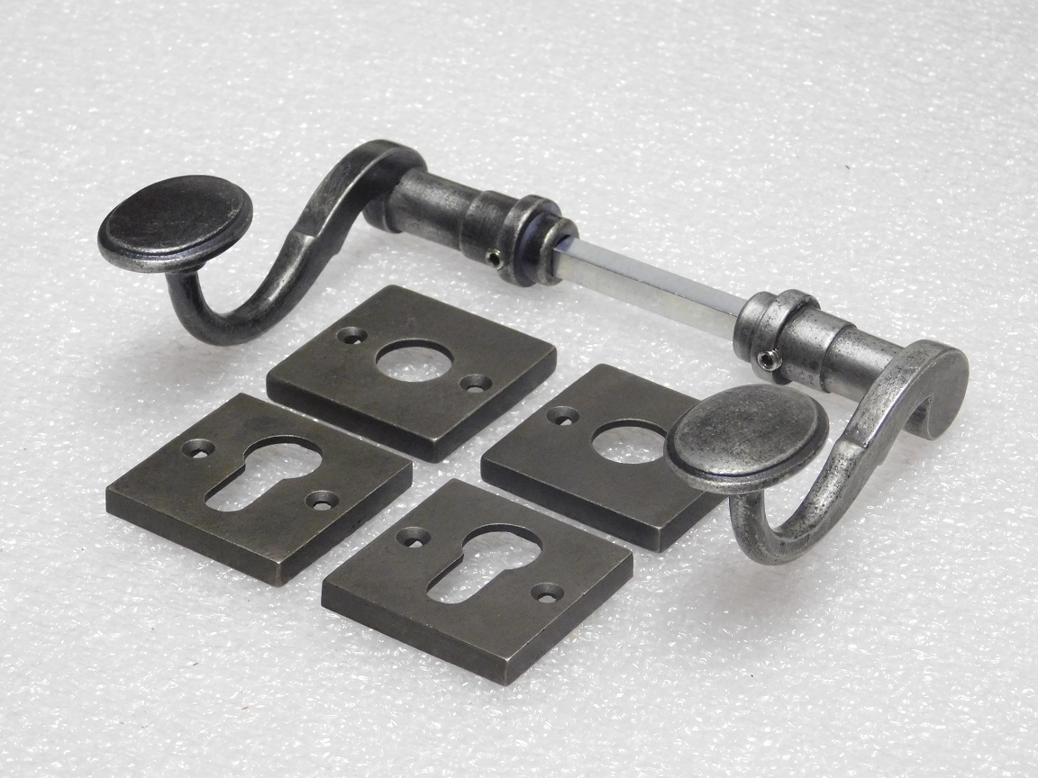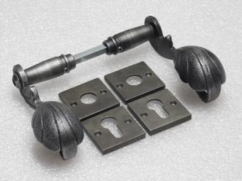 Set Klinken Hamilton + Klink- en- Slotrozetten Vierkant - Gietijzer Verzinkt