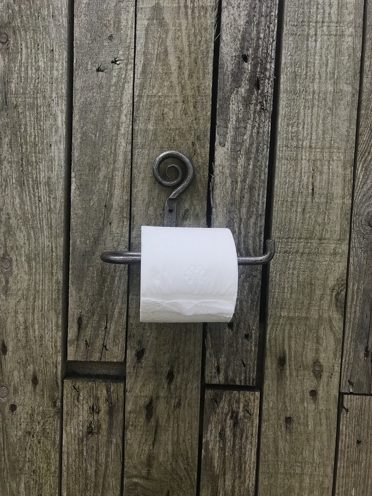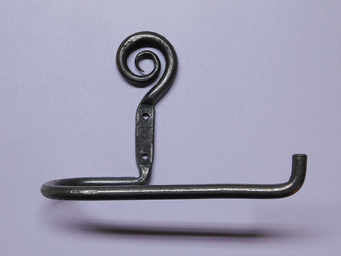 Deze handgesmede toiletrolhouder van massief ijzer combineert vakmanschap met stoere elegantie.