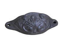 Deze schuifdeur-lade handvat shell siert oud en nieuw bewerkte deuren. Zware kwaliteit van ijzer kleur bruin. Geschik voor plaatsen op meubels als accessoires, in antieke stijl, evenals op de deur als hardware, wordt deze deur shell bij uitstek geschikt voor een schuifdeur of schuiflade of kastgreep, etc.