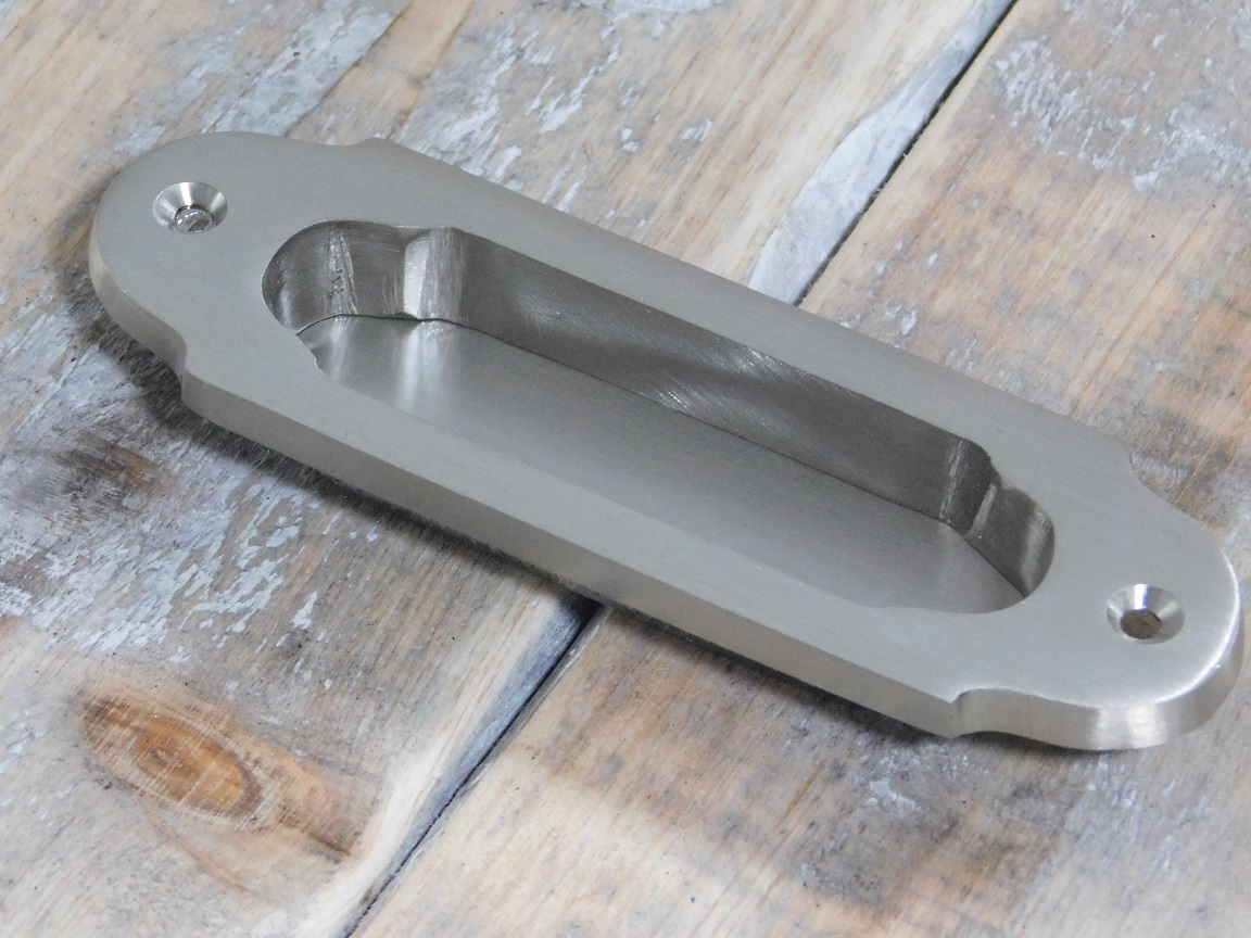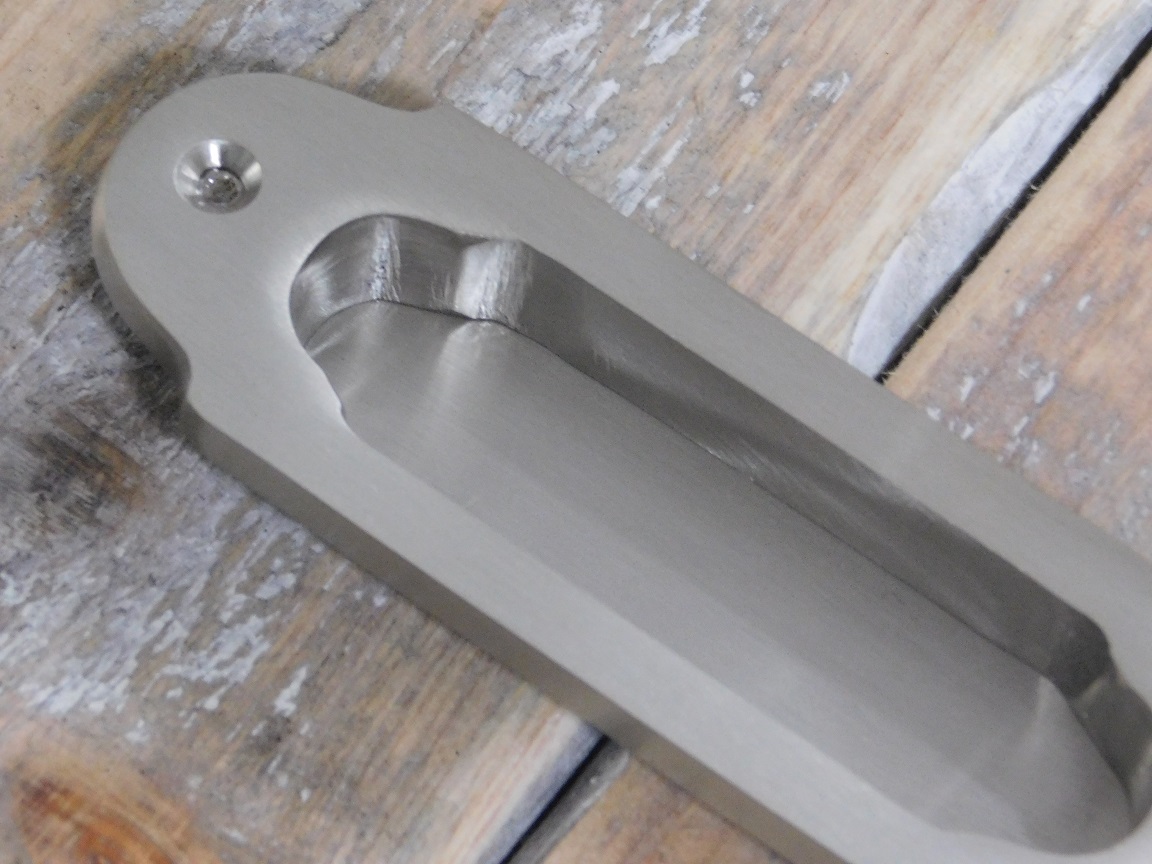 Mooie schuifdeurgreep gemaakt van mat nikkel.