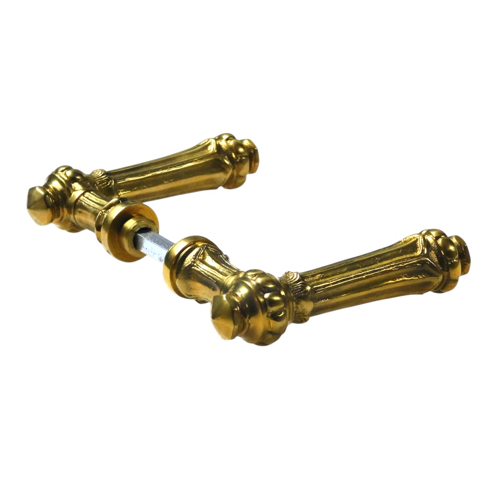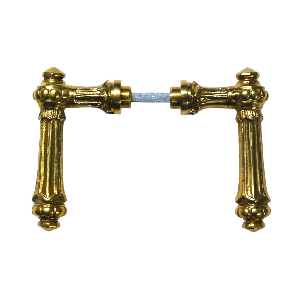 Een stijlvolle set messing deurklinken die past in verschillende stijlen interieur. Het tijdloze ontwerp maakt deze klinken geschikt voor zowel klassieke als meer moderne interieurs.