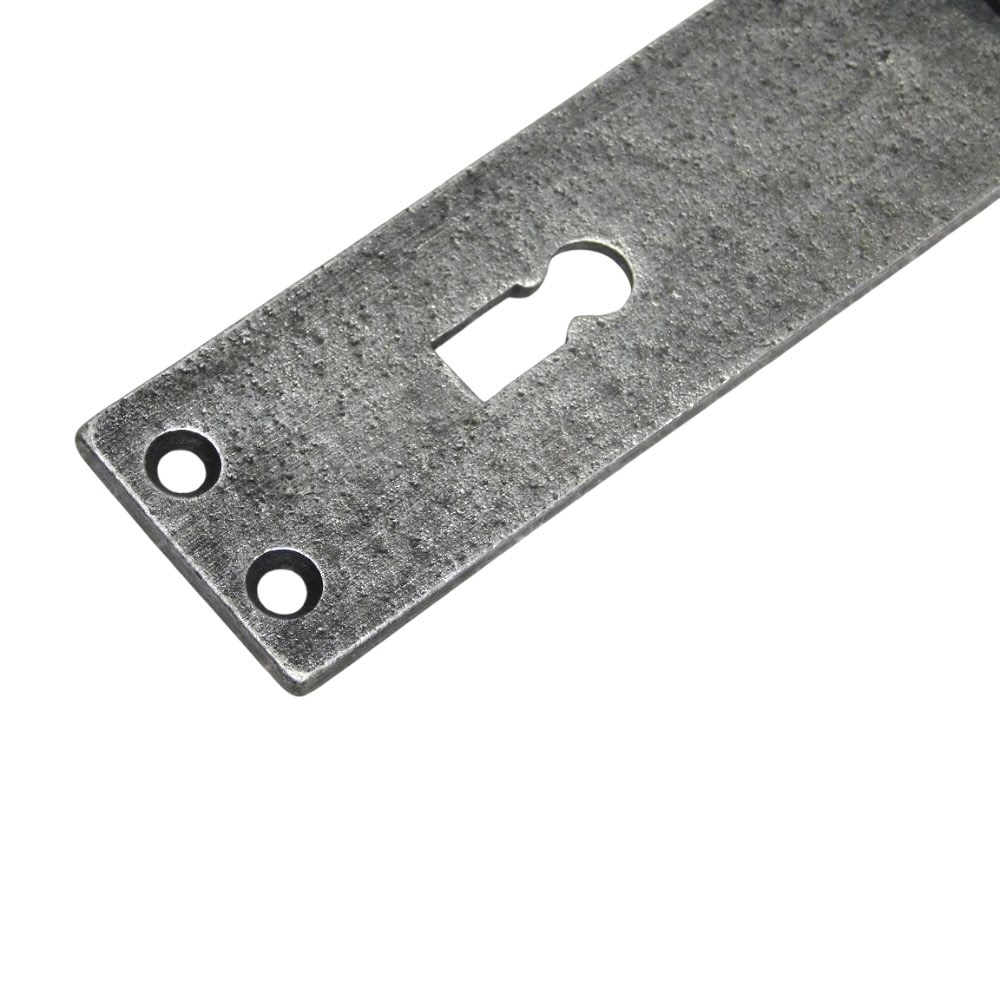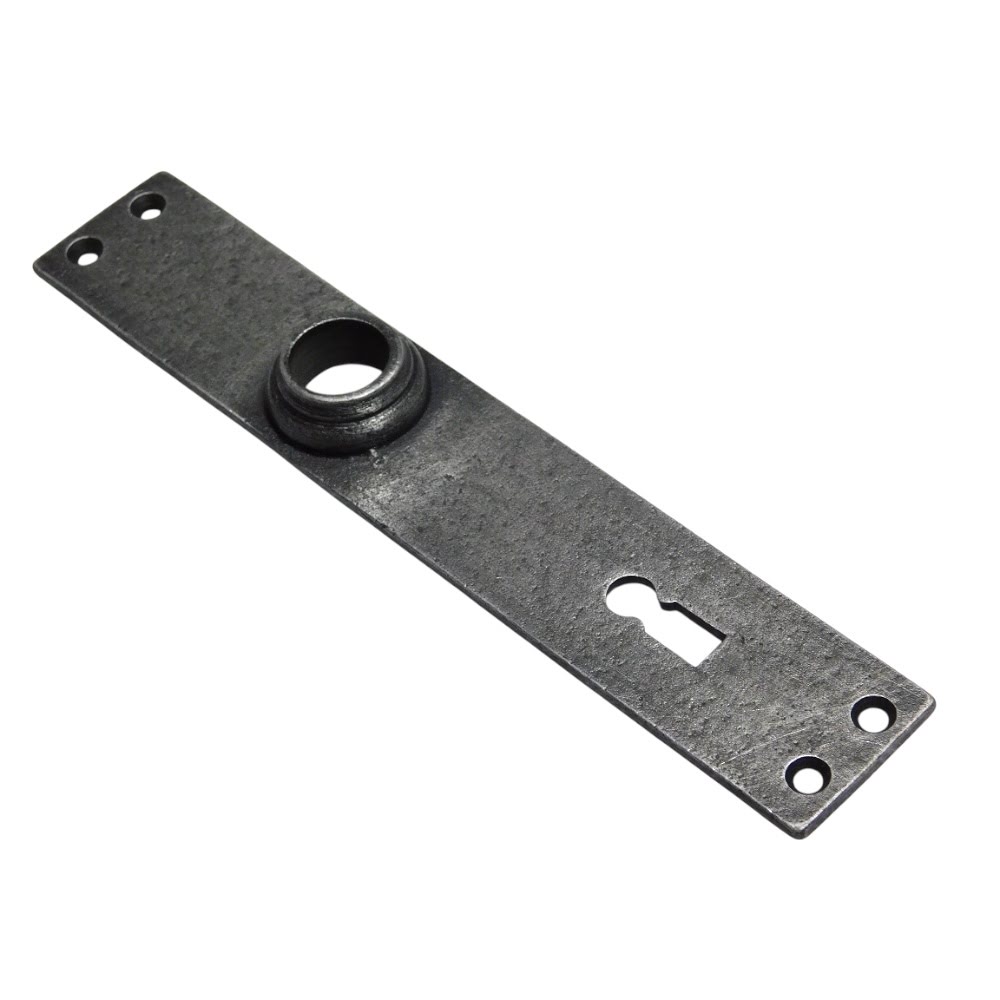 Deurplaat ‘Blanc’ met slotgat (BB 72) en klinkgat, gemaakt van verzinkt gietijzer, klassiek beslag voor binnen.