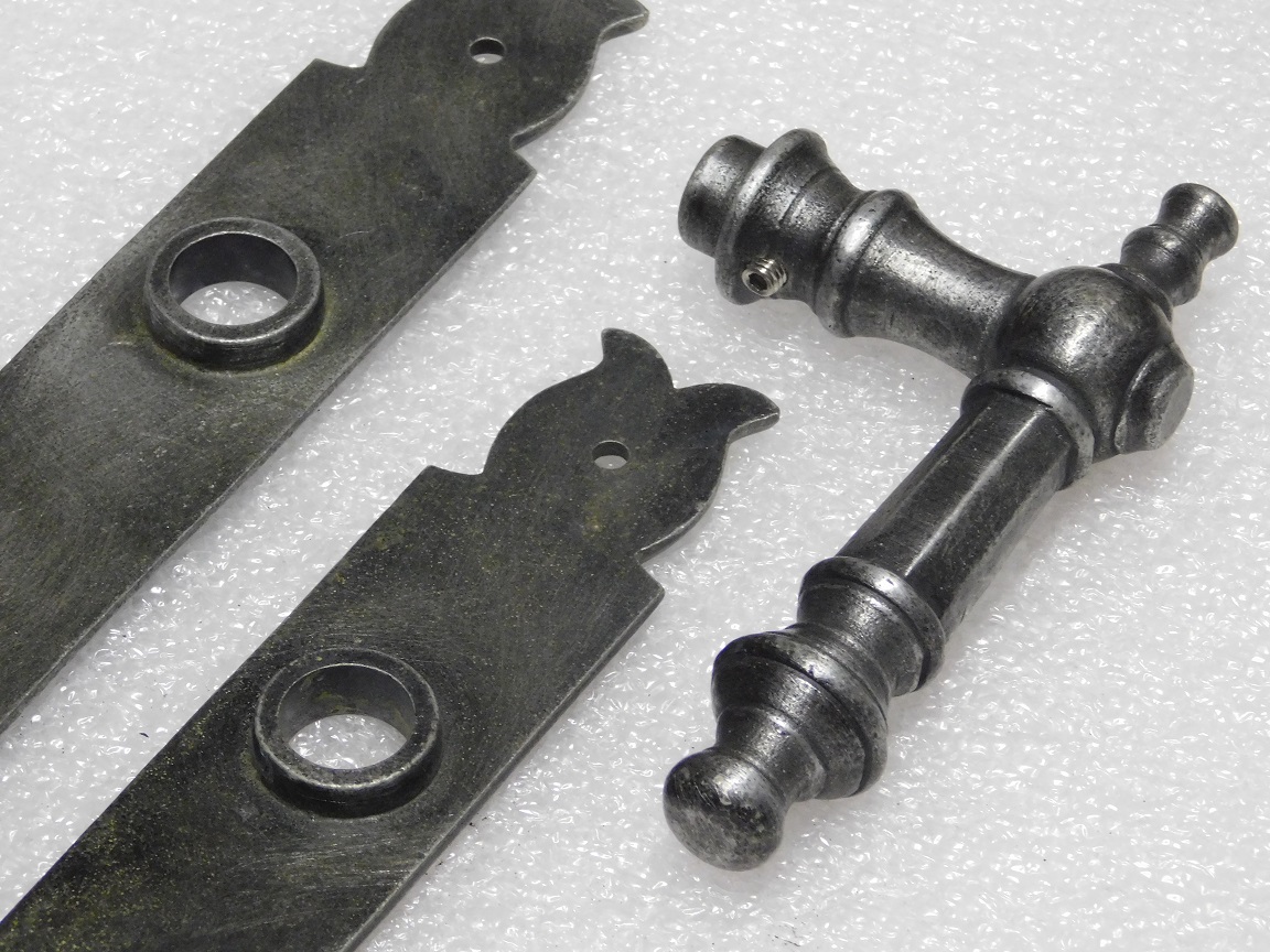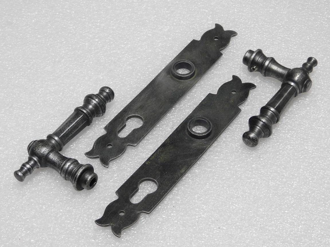 Deurbeslag set met 2 klinken en 2 platen (PC92) - gietijzer grijs