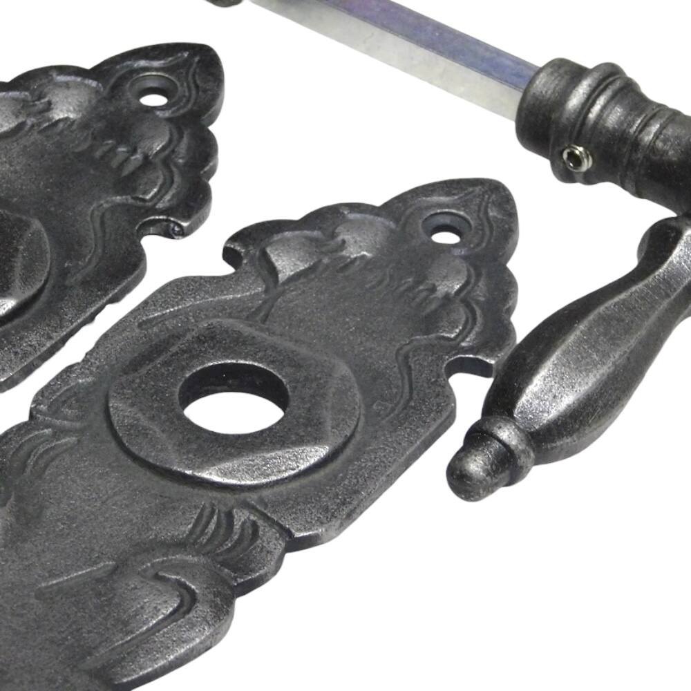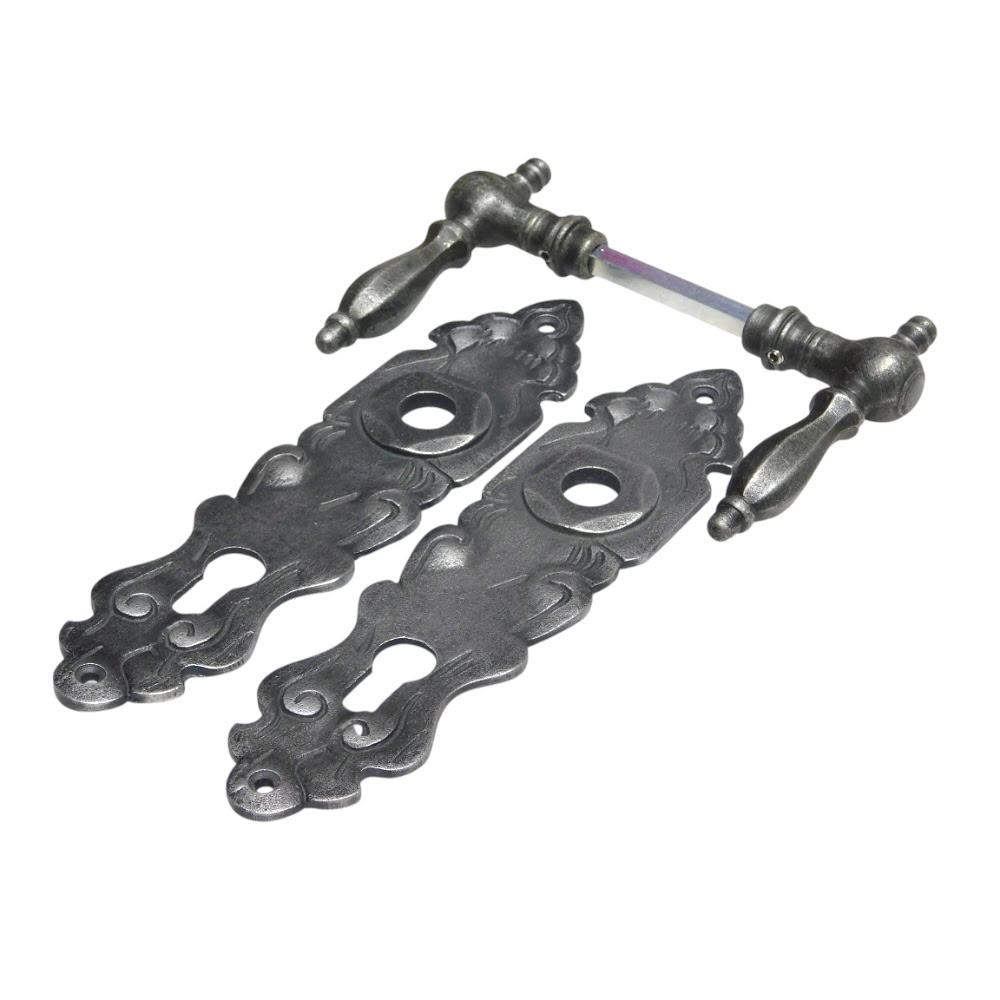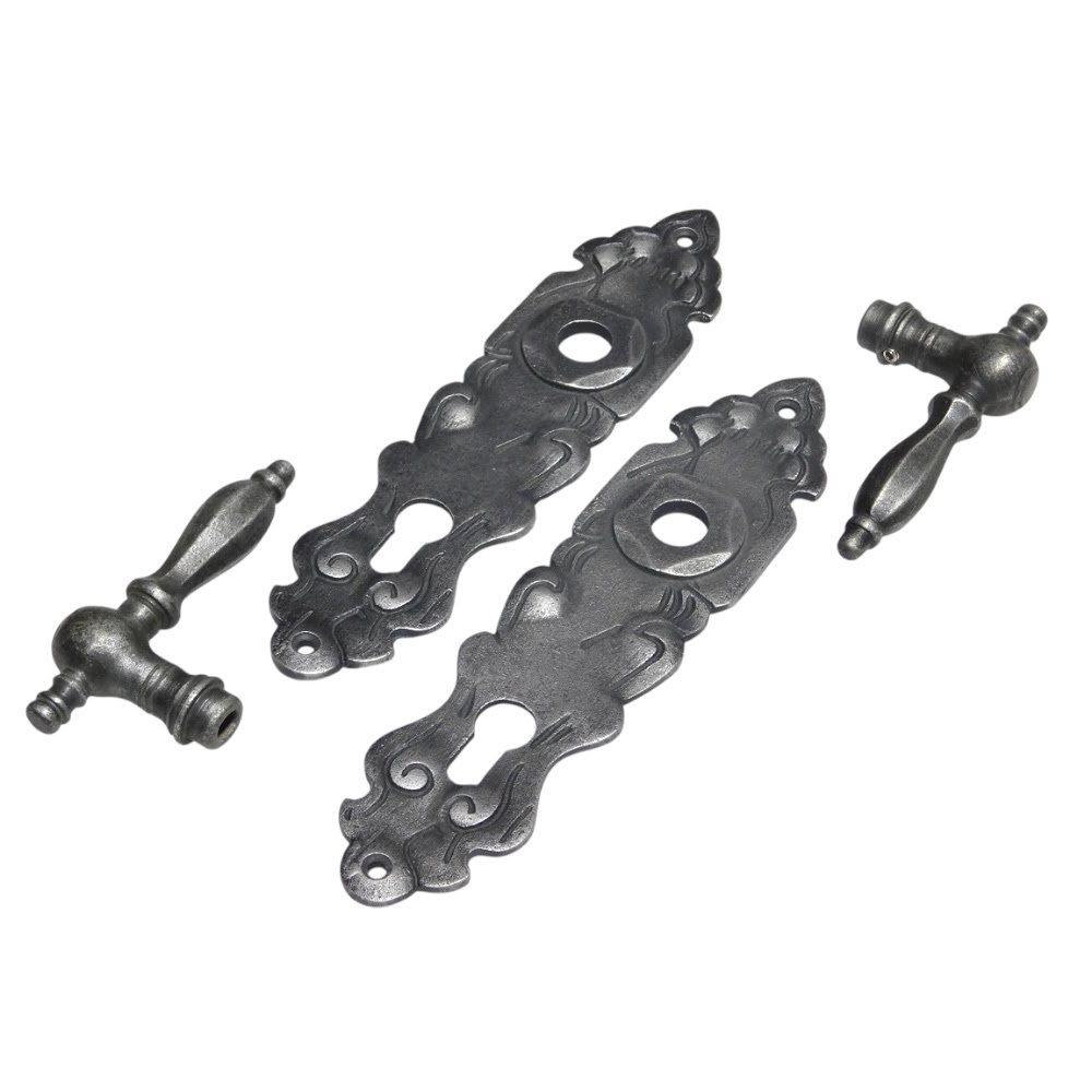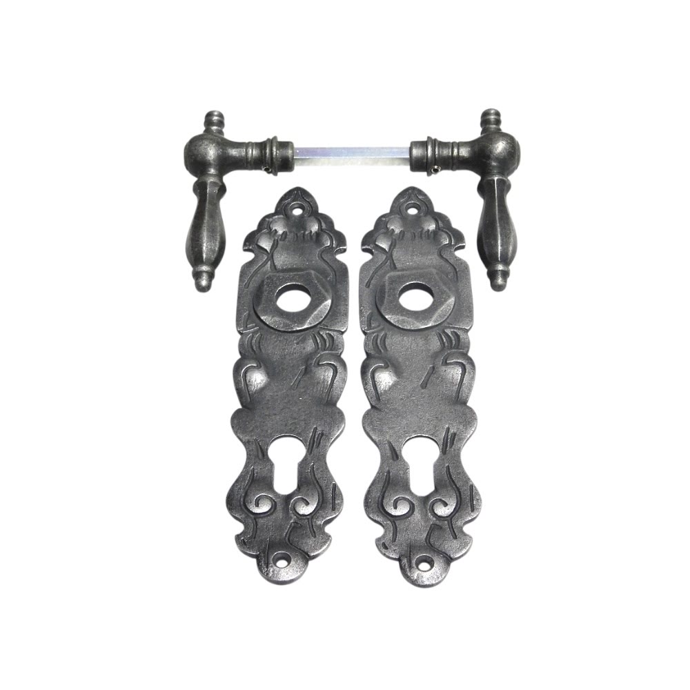 Huisdeurbeslag set met PC platen en klinken - gietijzer grijs