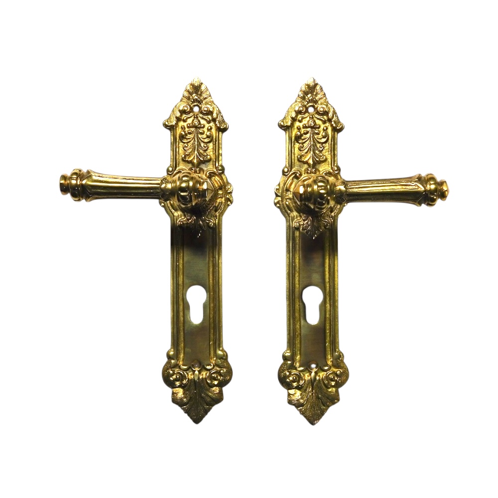 Set deurbeslag messing - 2 klinken en 2 deurplaten - PC 92