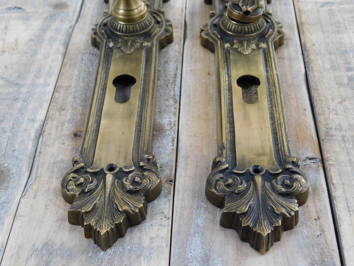 2 x Langschild - und 1 x Türgriff, für die Innenseite aus Alt -Messing