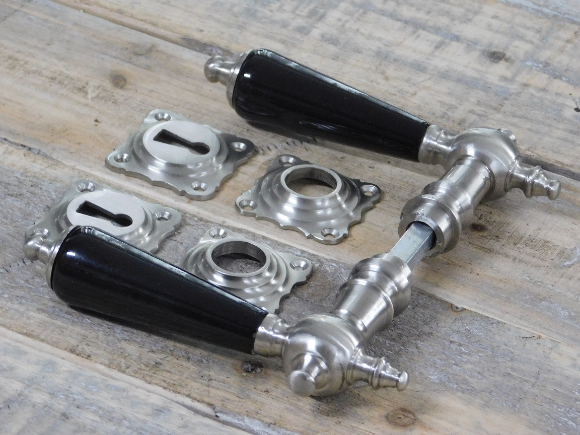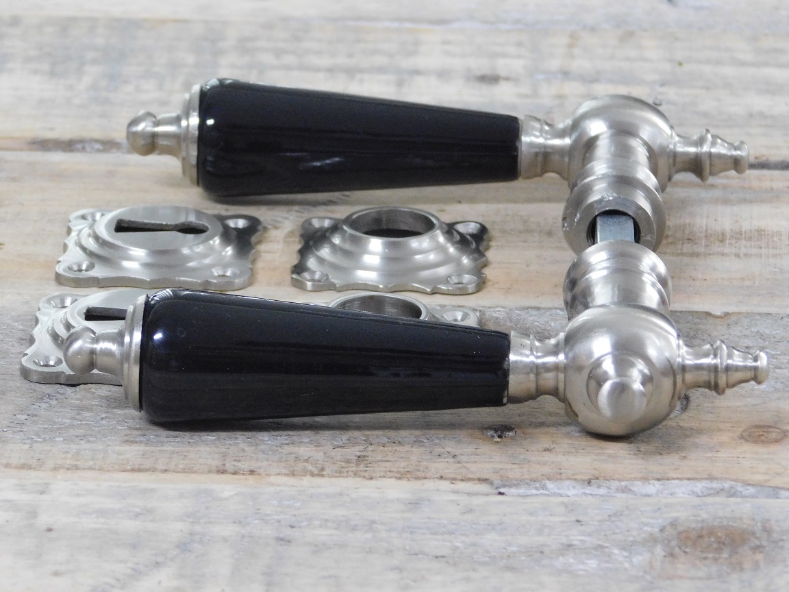 Antieke deur handgrepen voor oude deuren, nikkel mat, keramische deurgrepen, retro stijl.