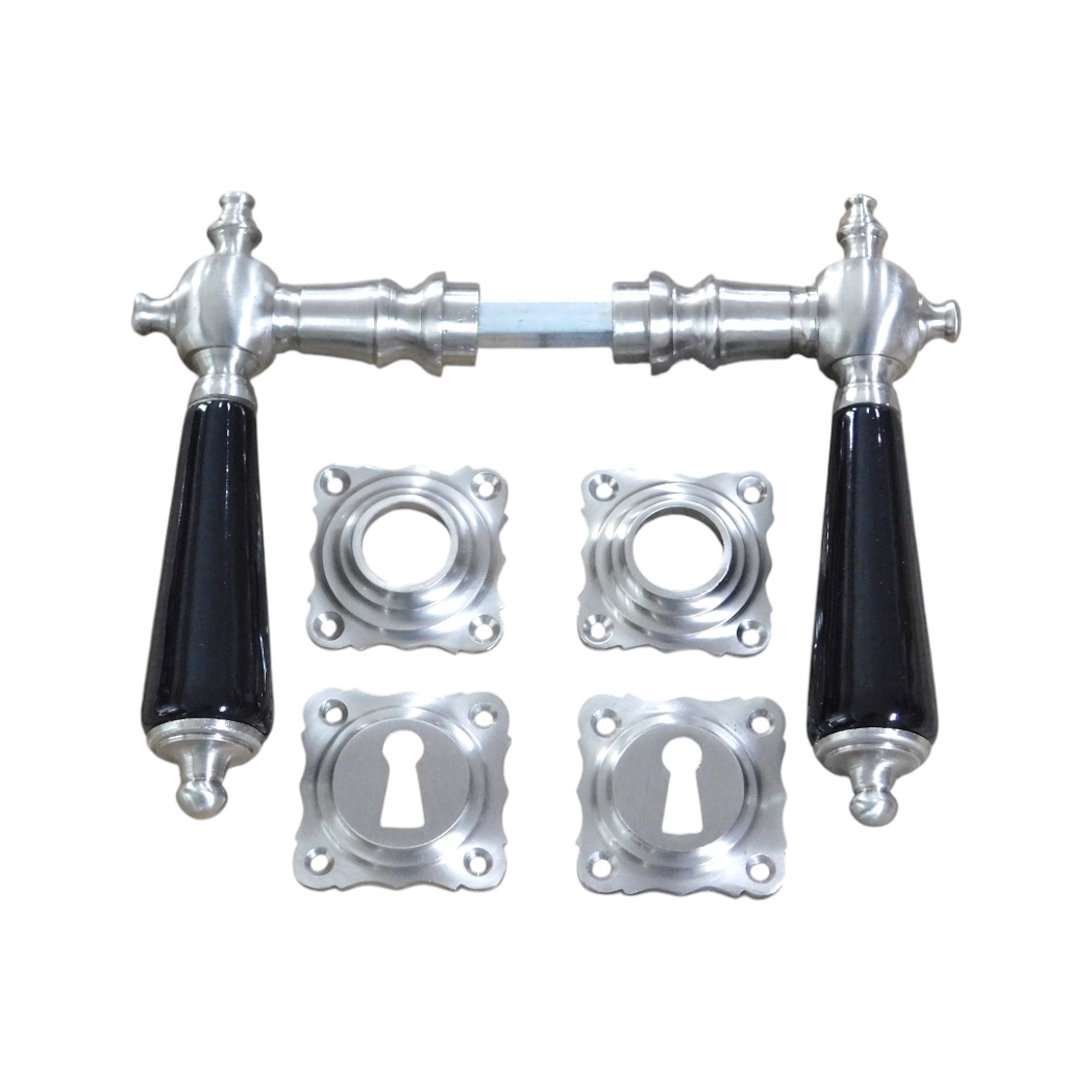 Antik-Türgriffe für alte Haustüren, Nickel matt Keramik Türklinken Retro Design.