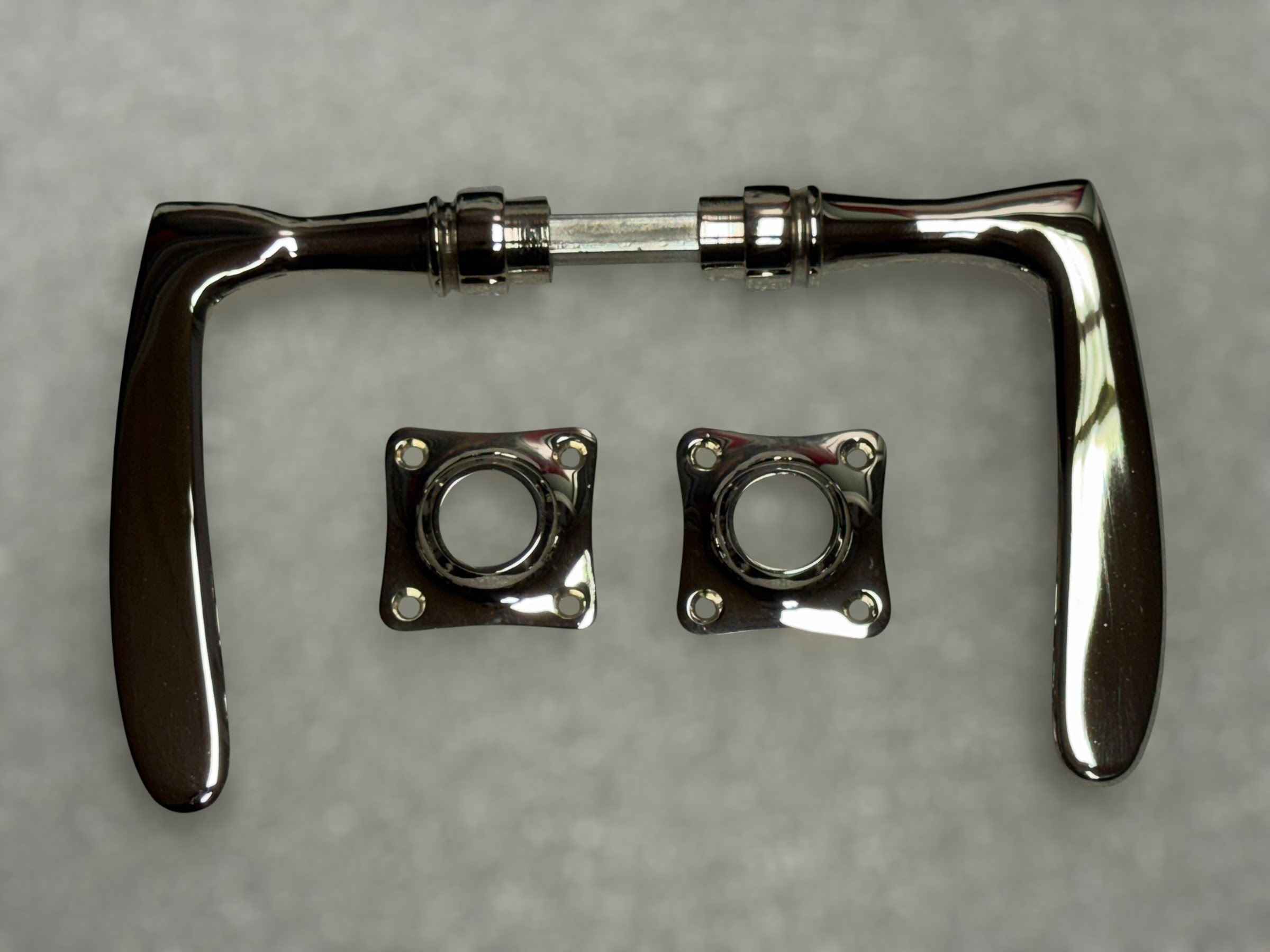 Leveringsomvang: 1x complete deurset, bestaande uit 2 deurklinken en bijpassende rozetten, chroom glanzend.
