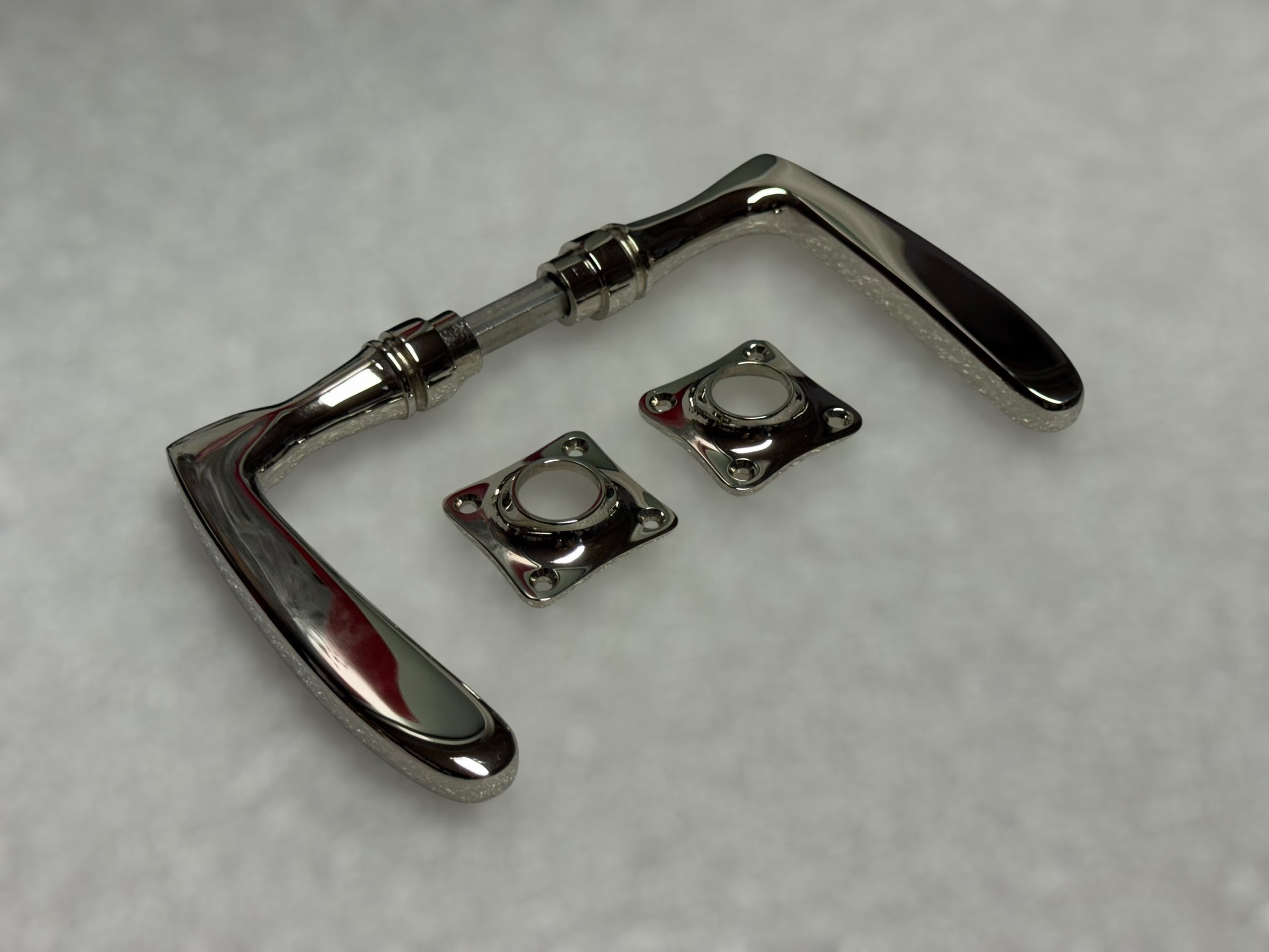 Stijlvolle en klassieke deurset gemaakt van nikkel, in glanzend chroom, complete kamer deurbeslag set.