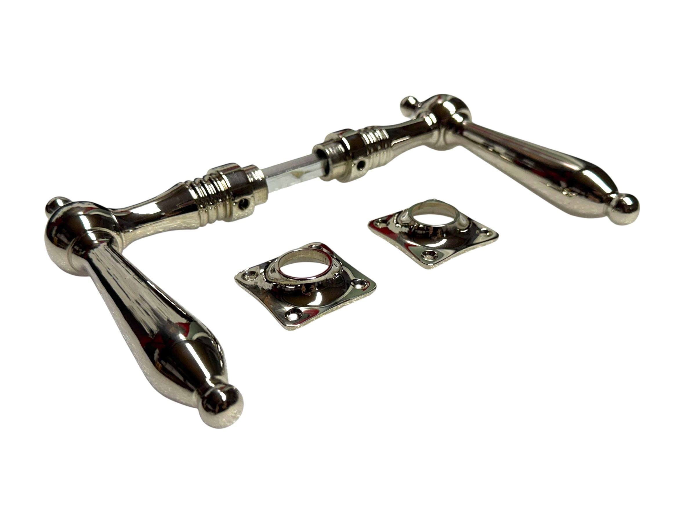 Klassieke deurbeslag set: twee klinken en rozetten in glanzend nikkel, stijlvolle deurset!