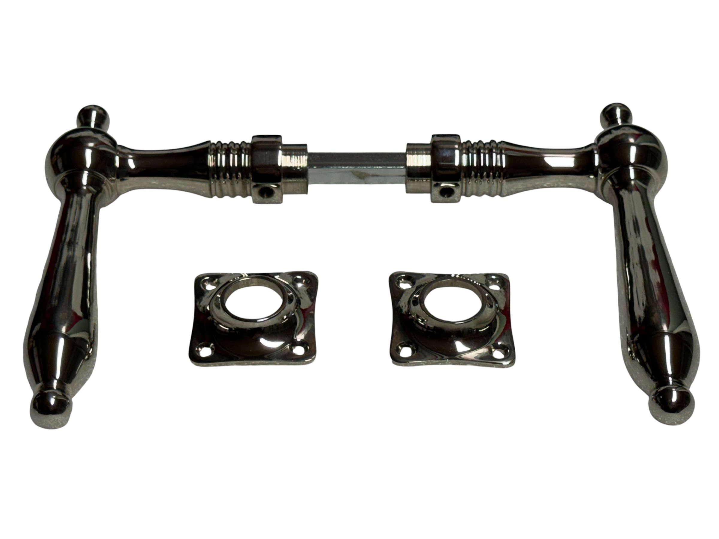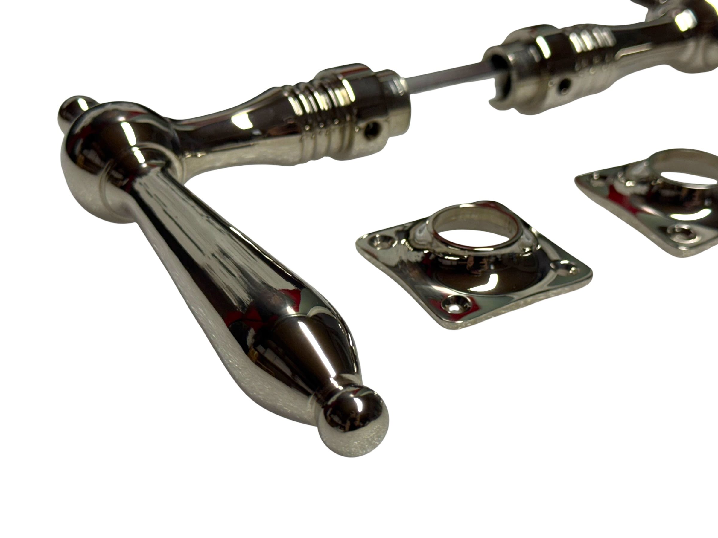 Leveringsomvang: deurbeslag set – 2 deurklinken en rozetten – nikkel chroom glans.