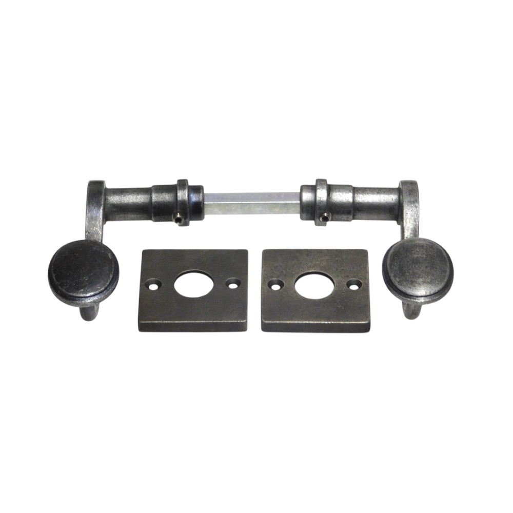 Set klinken ‘Hamilton’ met rozetten - kamerdeurbeslag van verzinkt gietijzer.