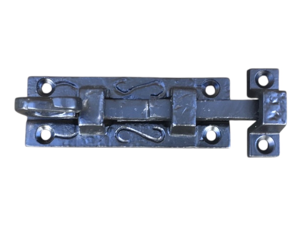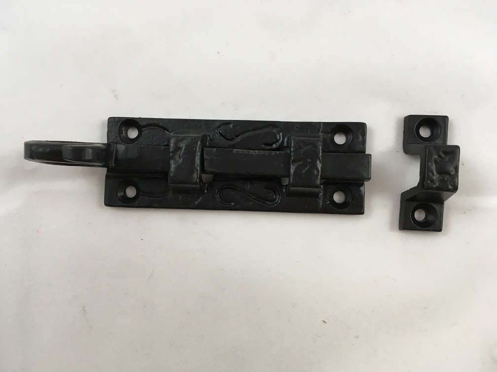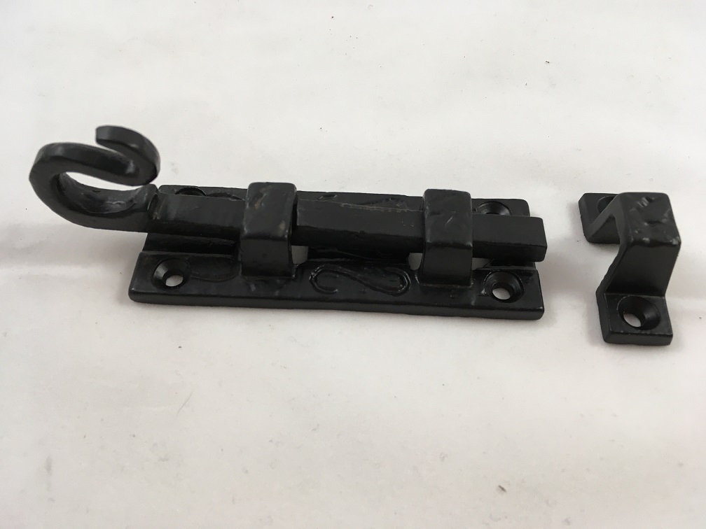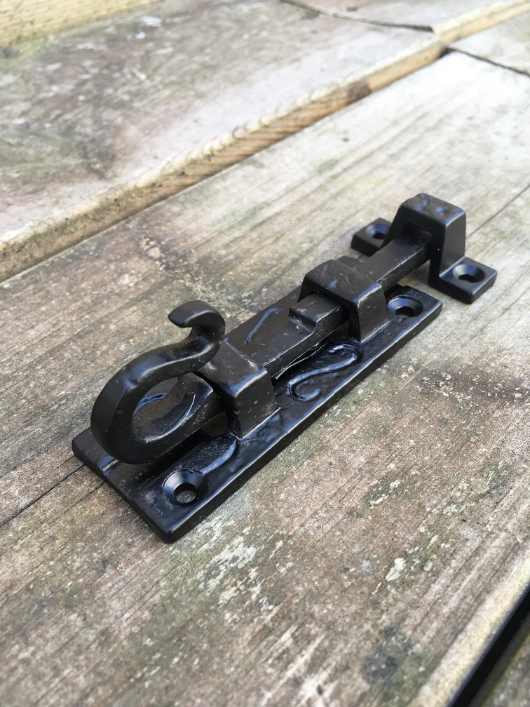 Een mooie deurgrendel / schuifslot, mat zwart, gemaakt van smeedijzer