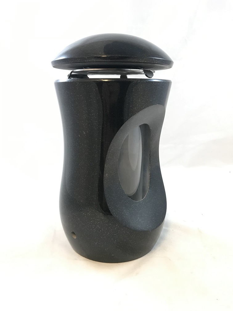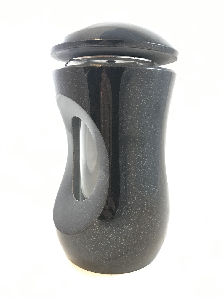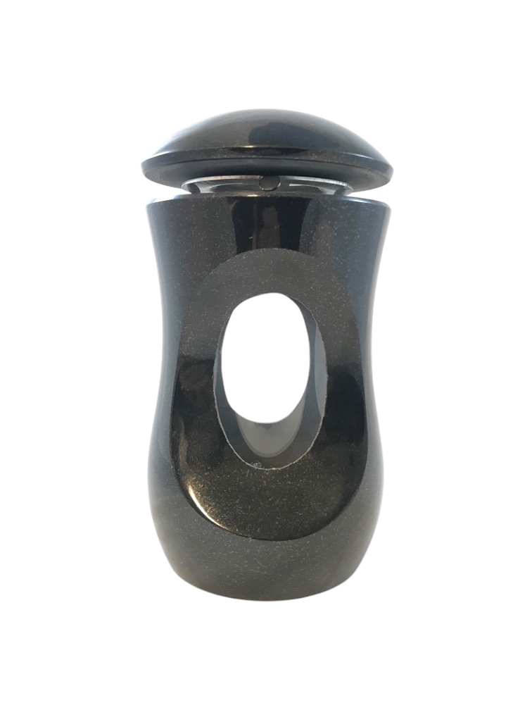 De graflamp is gemaakt van graniet en heeft aan de binnenzijde een glazen omhulsel waar u een lampje of kaars in kunt doen.