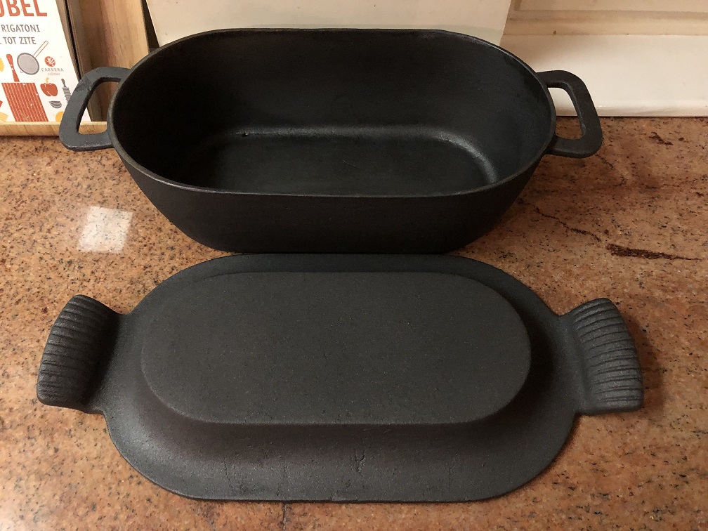 Levering: 1 x braadpan met deksel, vol gietijzer.
