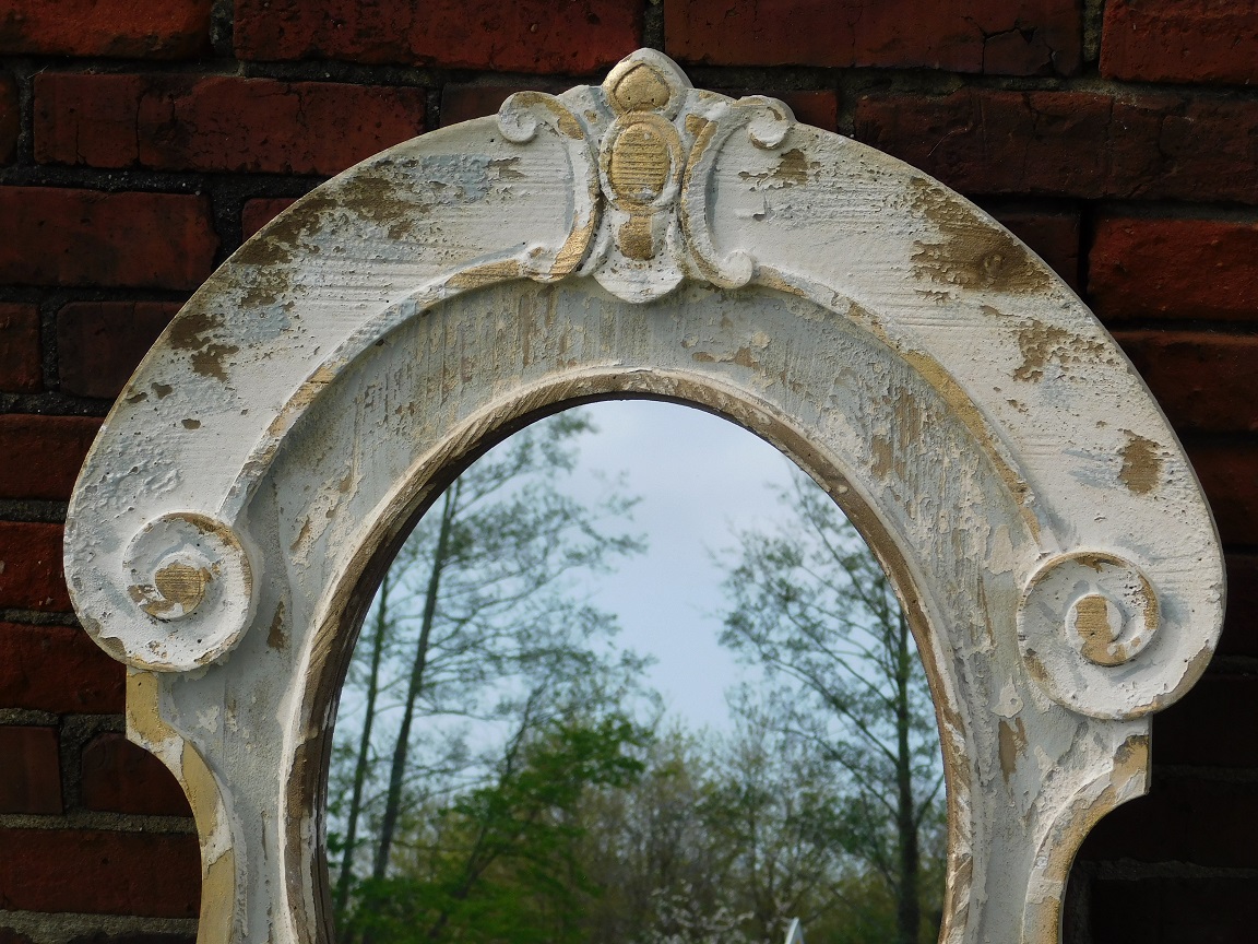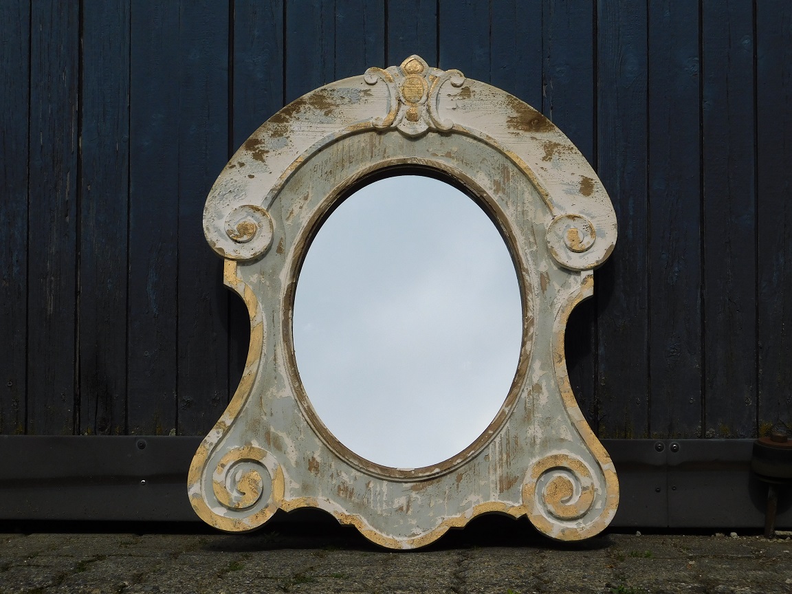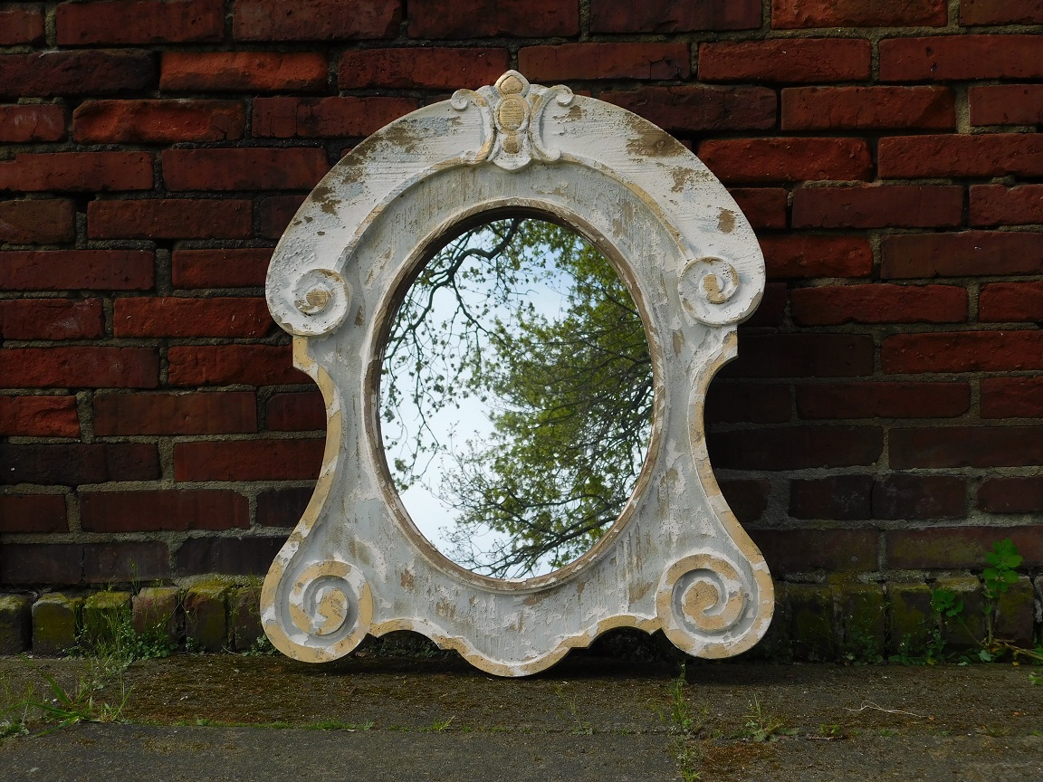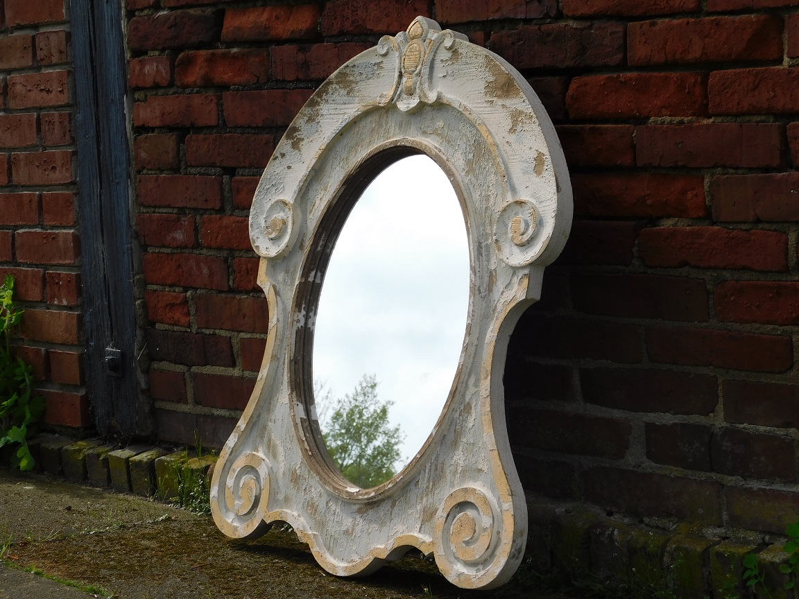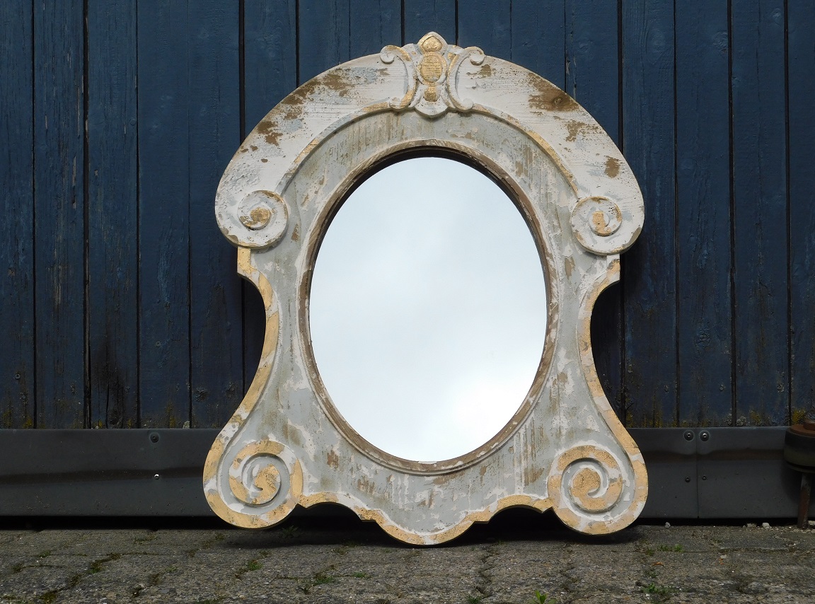 Prachtige forse spiegel, gemaakt van hout in whitewash!