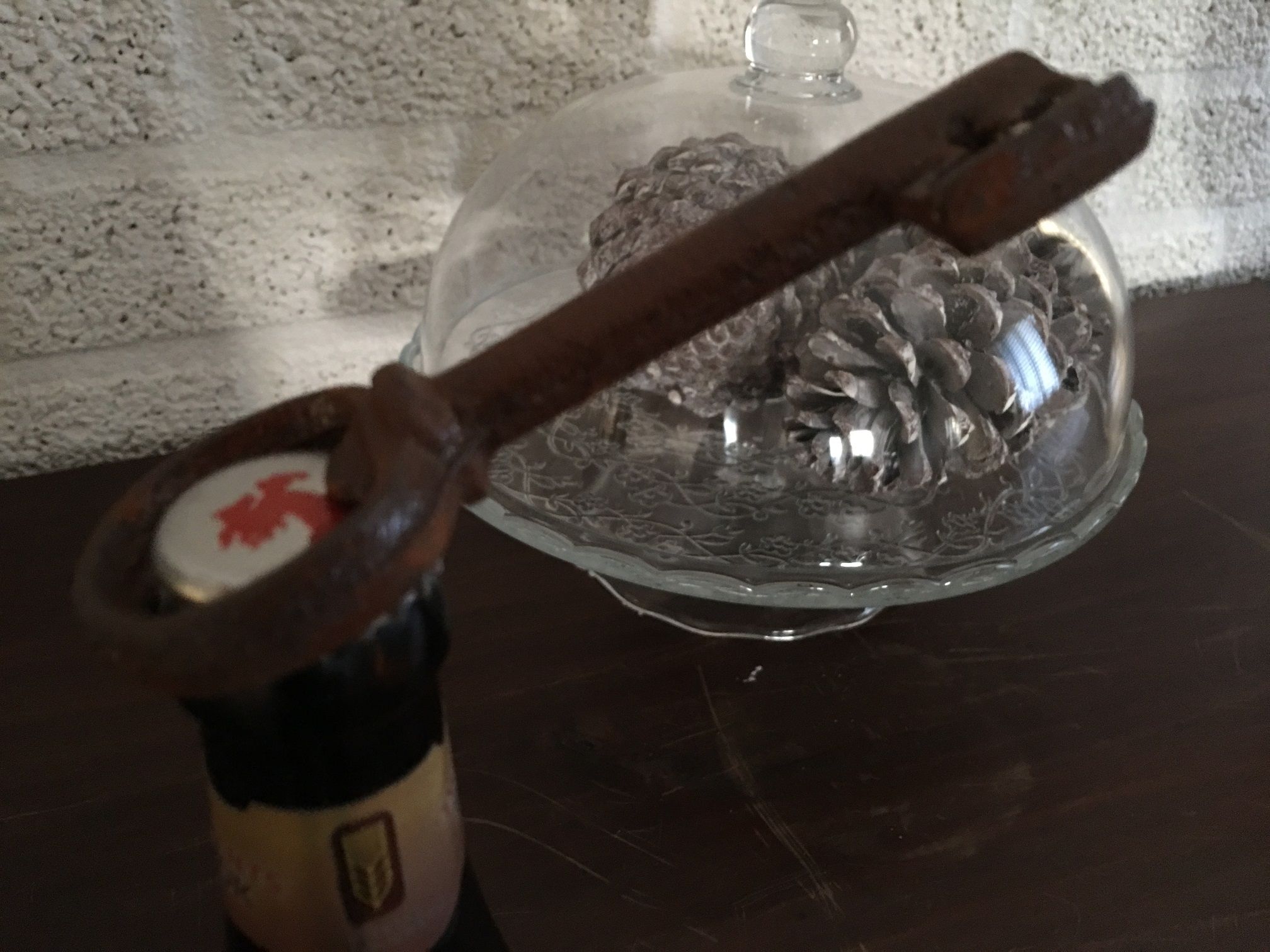 Klassieke gietijzeren sleutel als flesopener, prachtig!
